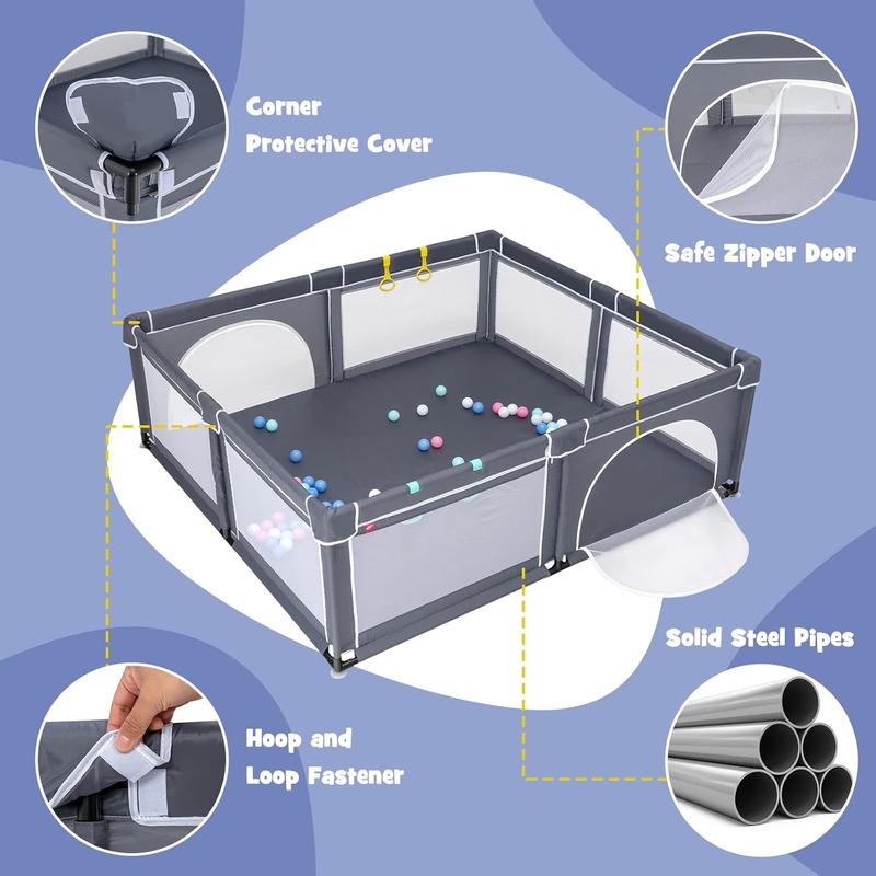 ·Spacious Baby Playpen: Our Infant baby playpen provides large area for babies to play and hold many toys. It promotes physical and cognitive growth. The fence is 27 inches high, and it's high enough to keep the baby from climbing out