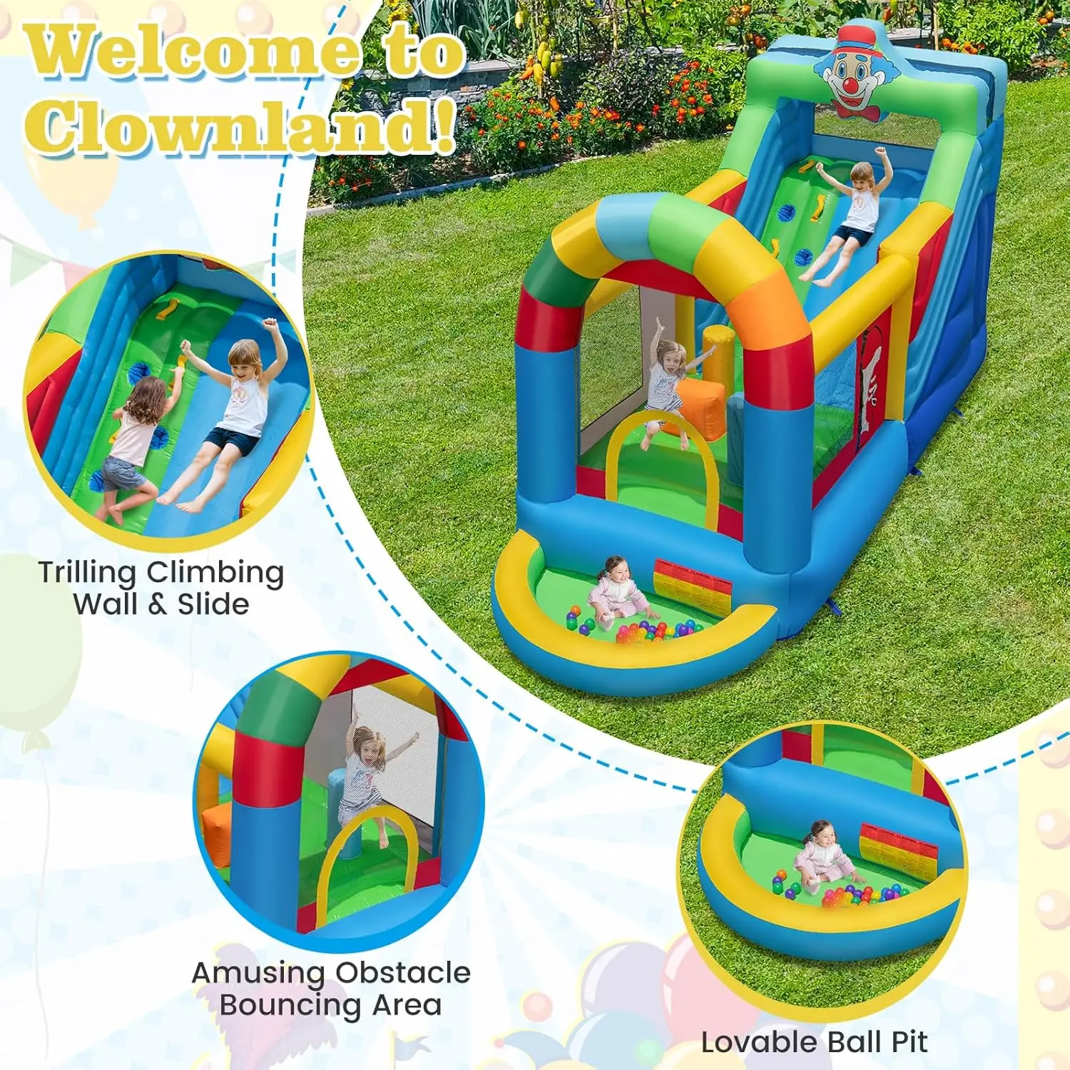 ·Best Gift for Kids: The vibrant and playful design of the inflatable bouncer captivates children’s interest with its colorful and fun appearance. With a range of play options, it enriches children’s leisure time and encourages social interaction among multiple players, enhancing their social skills.