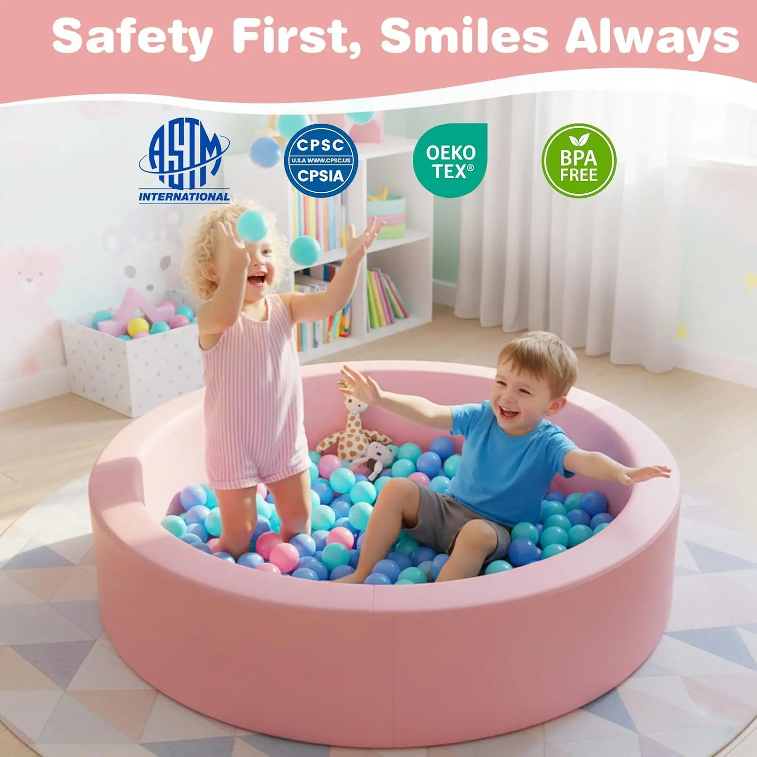 ·Supremely Soft, Safe Materials: The toddler ball pool is constructed with BPA-free, OEKO TEX certified, and highly elastic sponge that cushions every bump and reduces the risk of injuries during play. Moreover, the included mat and protective walls provide your child with a secure and cozy space to explore and move freely.