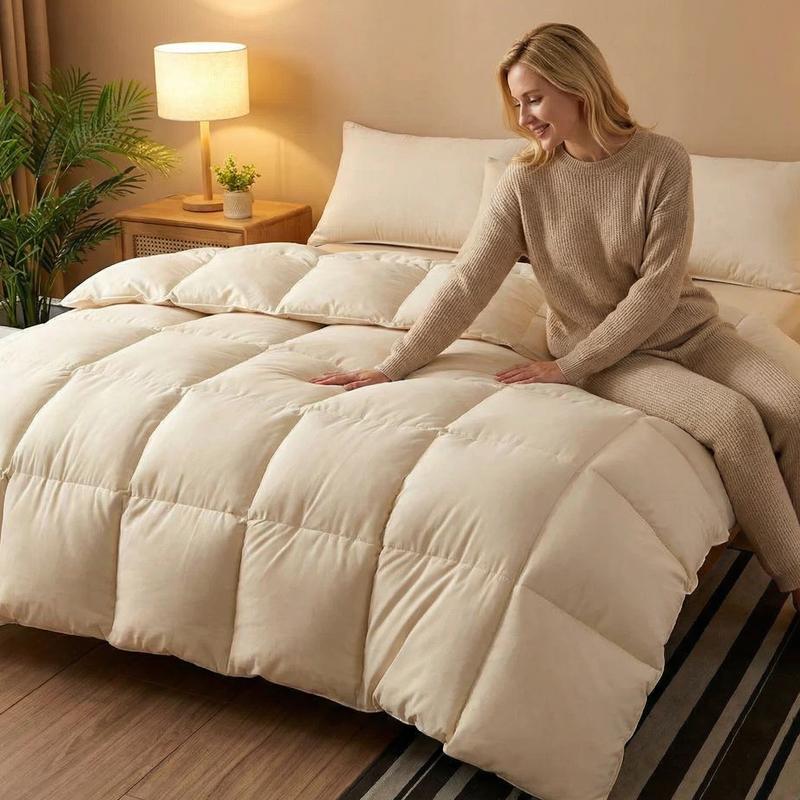 EASY TO CARE:Please gently fluff the comforter and let it rest for up to 24-48 hours after taking it out of the box to ensure maximum fluffiness. Machine wash separately in cold water on a gentle cycle and tumble dry low for a like-new restoration.