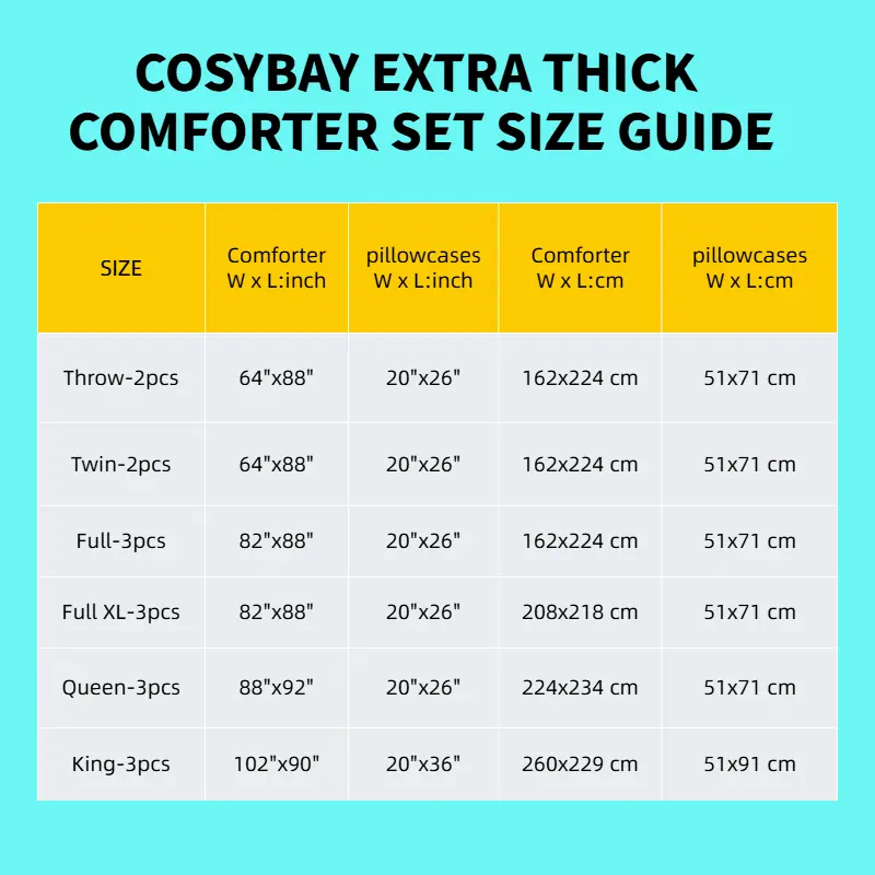 📏 Twin size: 1 comforter: 64"x88", 1 pillowcase: 20"x26".