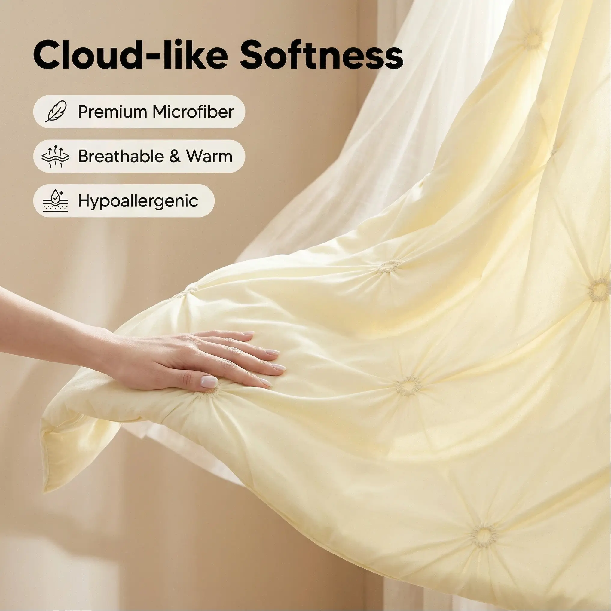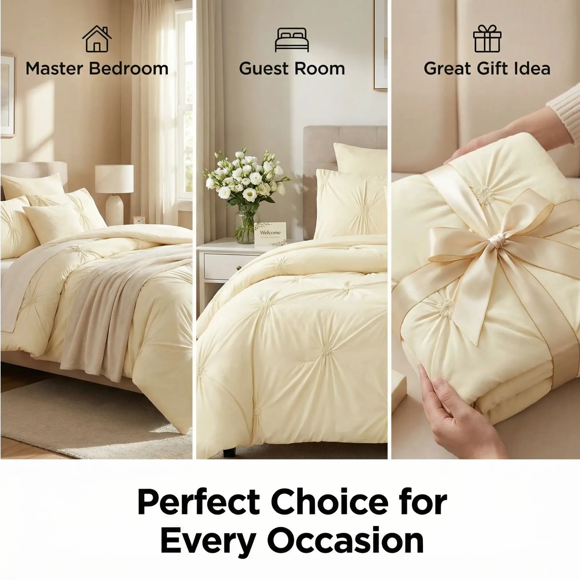 Features exquisite 3D pintuck ruffle design, which is distinct from ordinary flat bedding. Boasts rich visual layers and a subtle luxury vibe. Perfectly matches mainstream decor styles like American modern, Scandinavian minimalist, and French pastoral, effortlessly elevating your bedroom ambiance.
