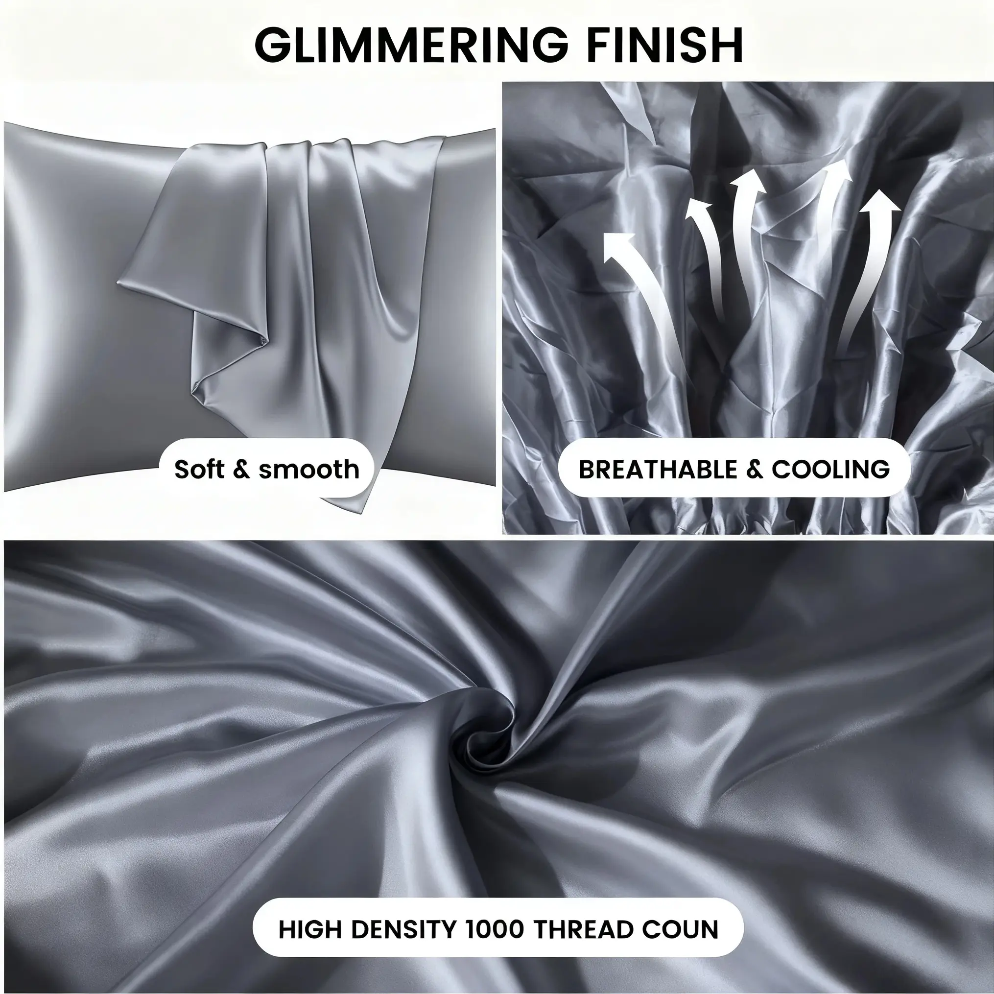 ·Silky Satin Fabric: Luxuriously smooth and cool-to-touch material reduces friction on hair and skin, preventing frizz and irritation for a hotel-worthy sleep experience