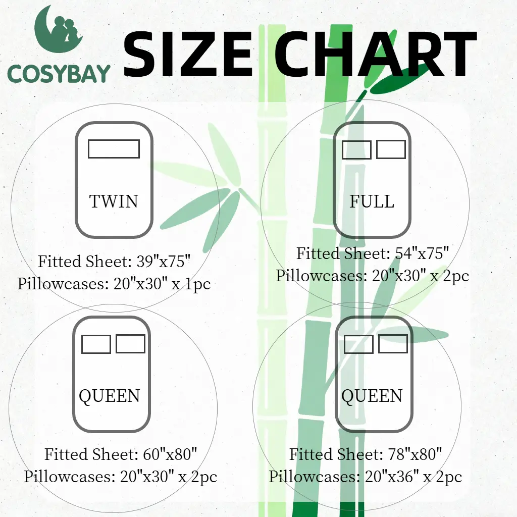 ·Luxury Matching Set: Includes one fitted sheet and 1or 2 pillowcases for a cohesive, sleek bedroom look; available in multiple sizes to fit Twin, Full, Queen, King beds.Twin Size:Fitted Sheet: 39"x75",Pillowcases: 20"x30" x 1pc;Full Size:Fitted Sheet: 54"x75",Pillowcases: 20"x30" x 2pc;Queen Size:Fitted Sheet: 60"x80",Pillowcases: 20"x30" x 2pc;King Size:Fitted Sheet: 78"x80"Pillowcases: 20"x36" x 2pc.