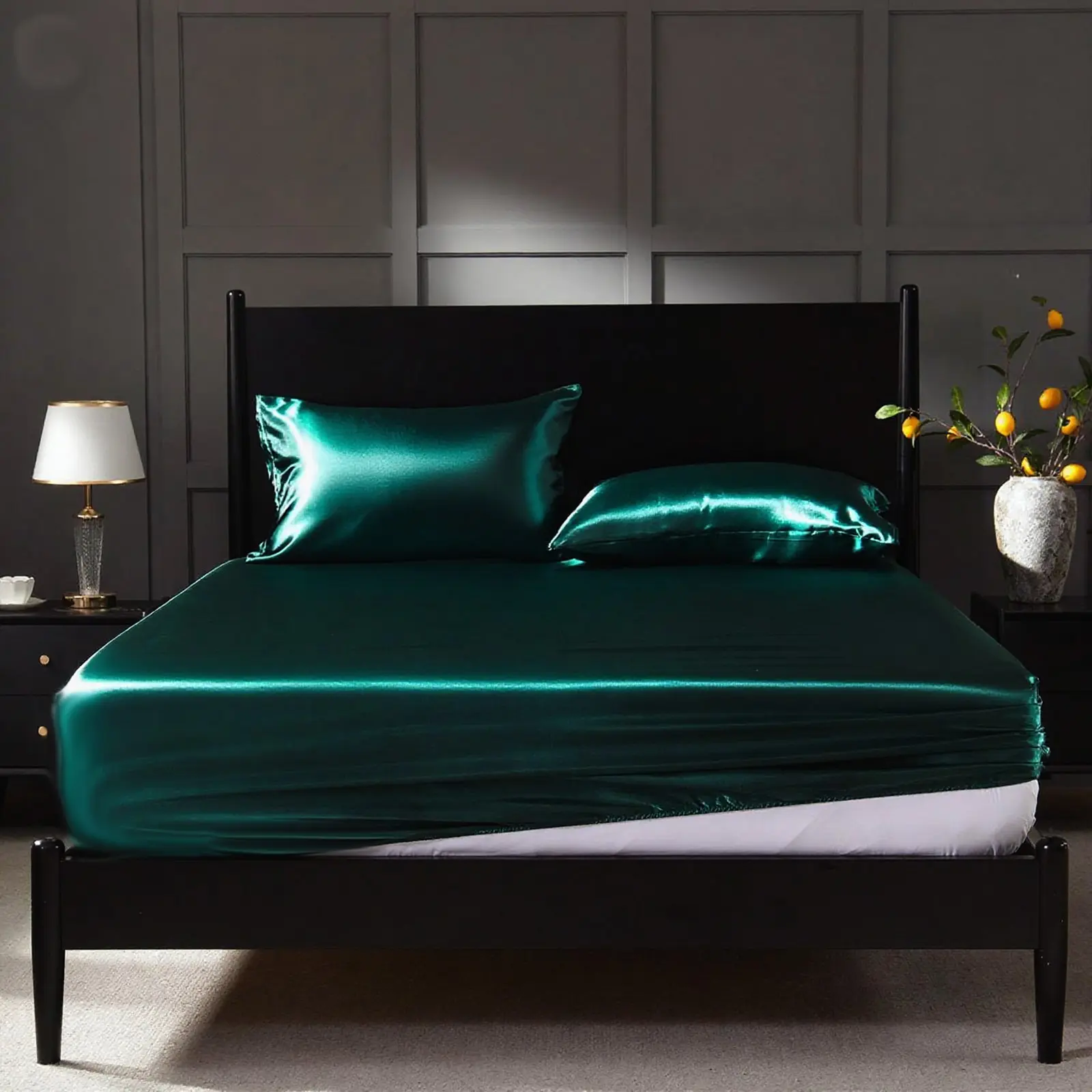 This bed sheet set has a vibrant and luxurious color, with smooth, glossy fabric that feels soft and comfortable. skin-friendly feel for a great sleeping experience. Overall, it has excellent quality and great value for money.