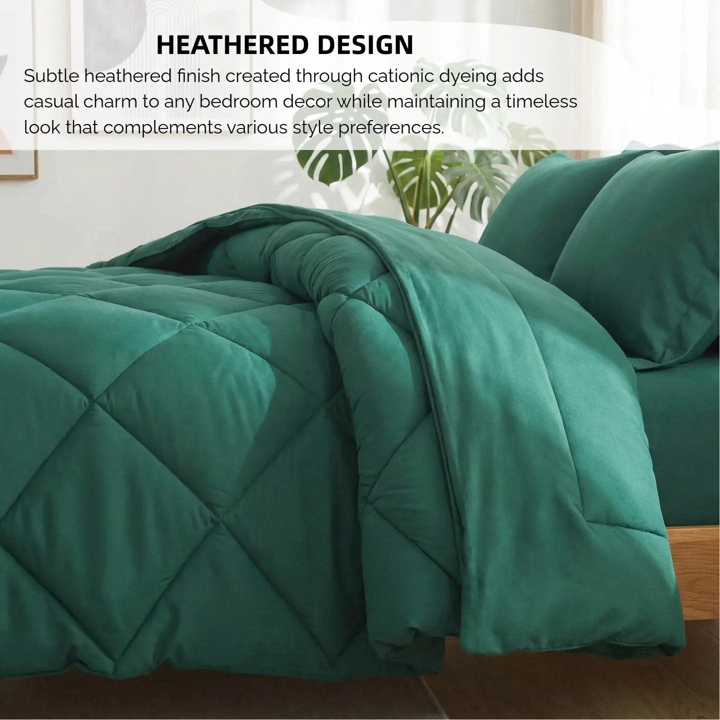 HEATHERED DESIGN: Subtle heathered finish created through cationic dyeing adds casual charm to any bedroom decor while maintaining a timeless look that complements various style preferences.