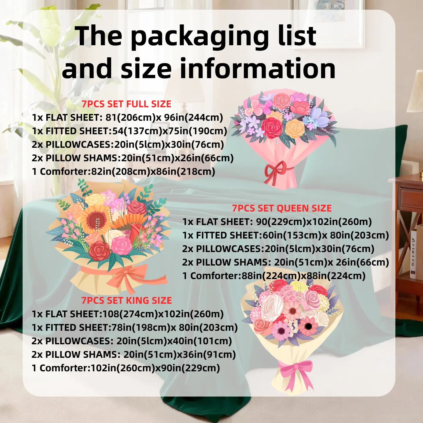QUEEN COMPLETE BEDDING SET: Package includes 1 Comforter 88"x88", 2 Pillow Shams 20"x26", 1 Flat Sheet 90"x102" , 1 Fitted Sheet 60"x80"+14" and 2 Pillowcase 20"x30"; Our bed in a bag is packaged in a vacuum bag, so you can dry it in low heat or tap the comforter gently while baking it in the sun to fluffy again.