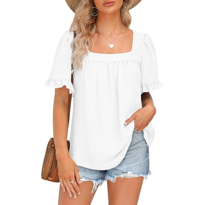 🌟 The solid color design makes it suitable for most ladies' body shapes. The square neckline adds a classic touch, enhancing the overall look of the blouse.