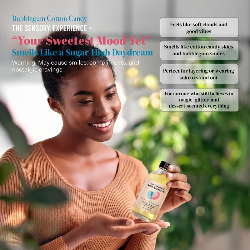 Treat your skin to the ultimate hydration with our Handcrafted Bubblegum Cotton Candy Boy Oil. This lightweight, fast-absorbing formula nourishes deeply while leaving behind a fruity and sweet and soft candy scent that lingers. Perfect for body, skin, hair, and cuticles, it delivers all-day moisture with a silky-smooth finish.
