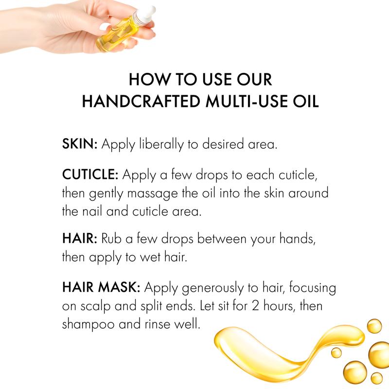 Ideal for daily skincare, this multi-purpose oil is designed to enhance your natural glow, and keep your skin feeling velvety-smooth. Whether applied after a shower or used for a relaxing massage, it locks in hydration effortlessly.