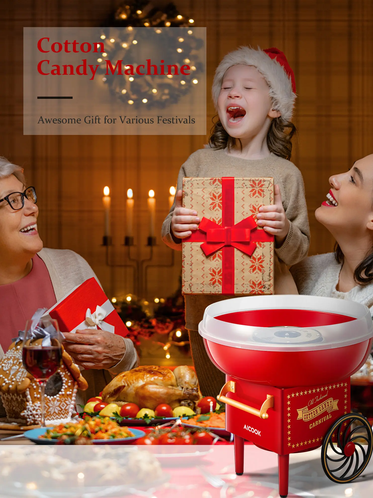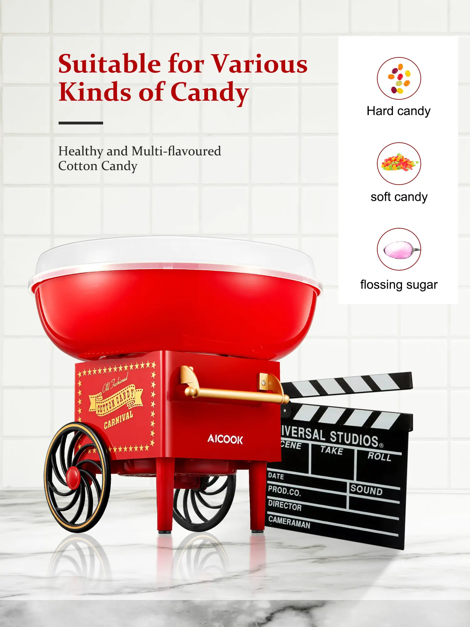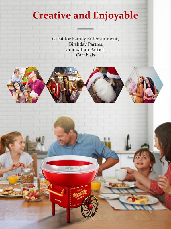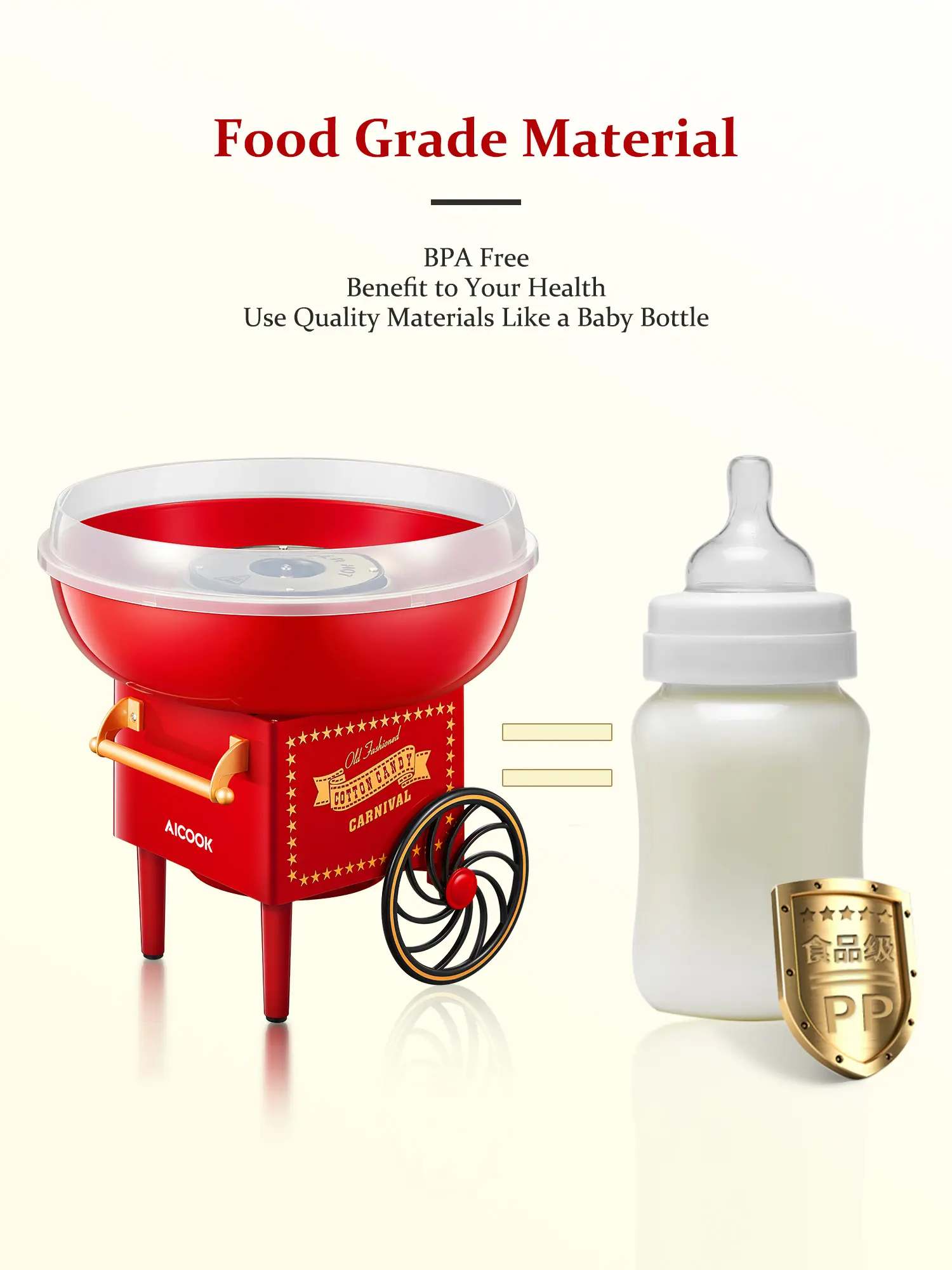 ·【Safe Materials & 24-Months Warranty】AICOOK cotton candy maker made of food-grade PP plastic + high-quality stainless steel material, it can give children a safe and healthy process of making Cotton Candy. We provide 24 months warranty for the cotton candy maker, If you have any product quality problem, please contact the support team to get the new replacement.