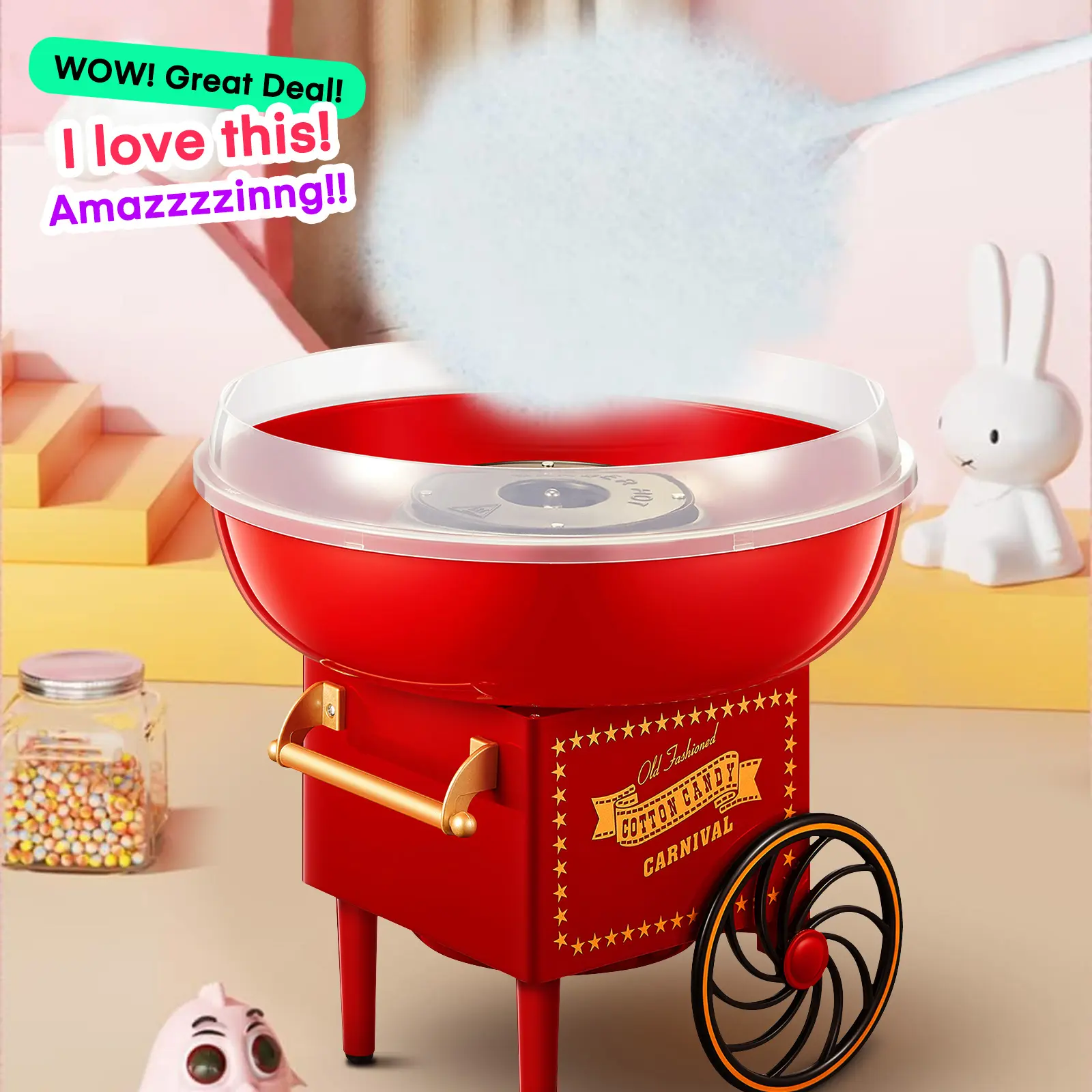 ·【Fun for All Ages & Best Gifts】Parents and children alike can funny enjoy making sweet candies together for all ages. Red vintage outlook and car design will be flavored by children and adults, lightweight and quiet. Candy floss maker comes with everything you need for homemade sweet treats. It is the perfect gift for your loved ones' birthdays, Christmas, and family parties.