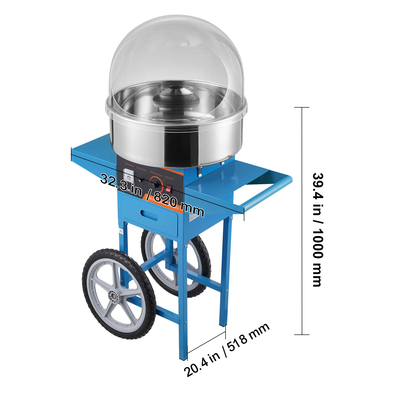 • Temp Control: Unlike the common ones, our electric candy floss maker features a voltage meter and a temp control knob. By changing voltage, you can simply adjust the temperature from 244.9°F/118.3℃ to 439.2°F/226.2℃. If you want to try different flavored sugars, you will absolutely need this.