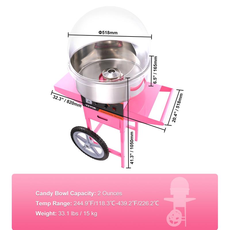 • Work with Any Candy You Like: This cotton machine allows you to use the traditional flossing sugars, milk sugars, fruit cubes, or any of your favorite hard candies to make delicious cotton candies. Large wheels and sturdy handle facilitate movement, and it is perfect for carnivals, festivals, birthday parties, and sports events.