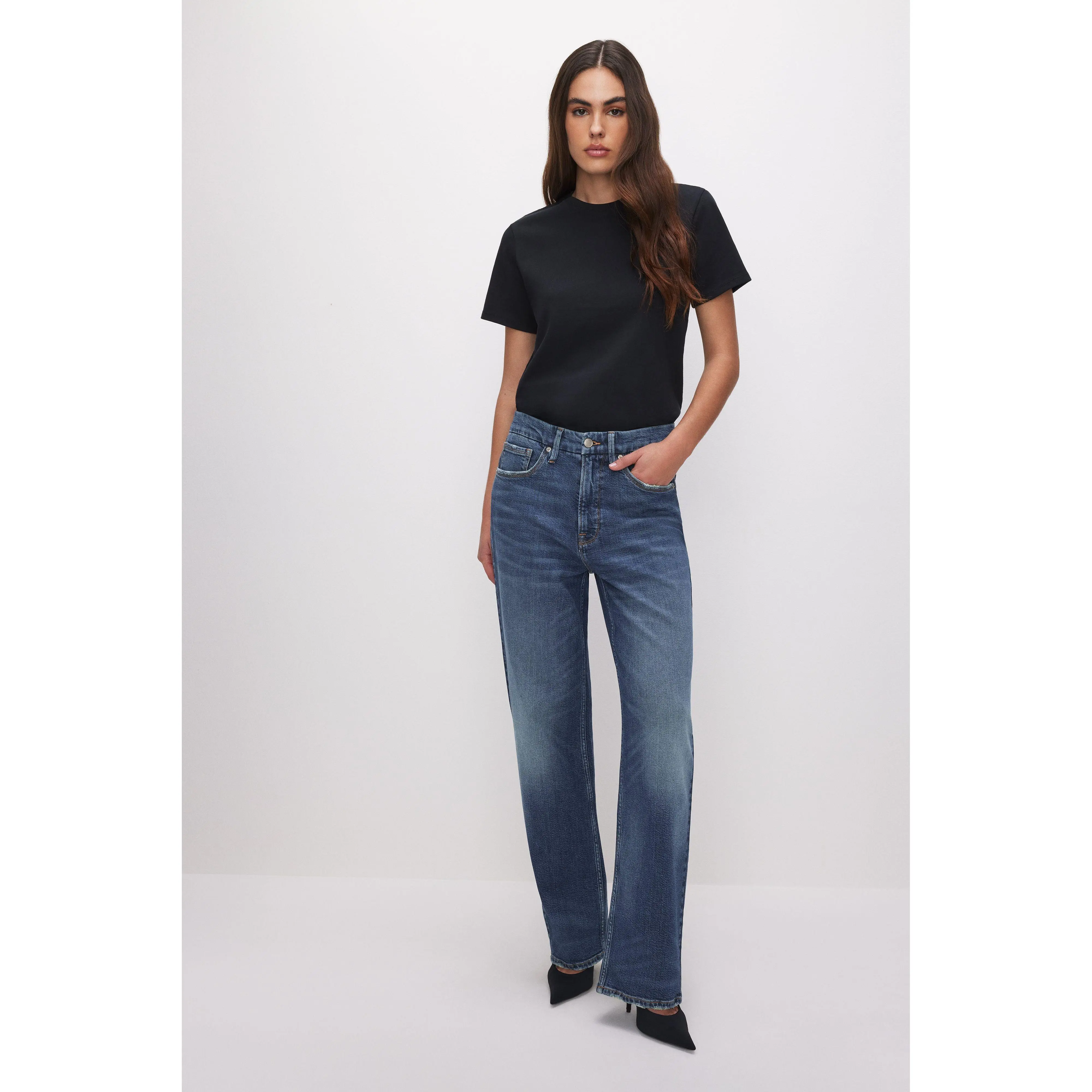 Finding good basic tees isn’t so hard with GA😍🩷 also the jeannnnnnsss  #goodamerican #jeans #cottontees #cotton #tees