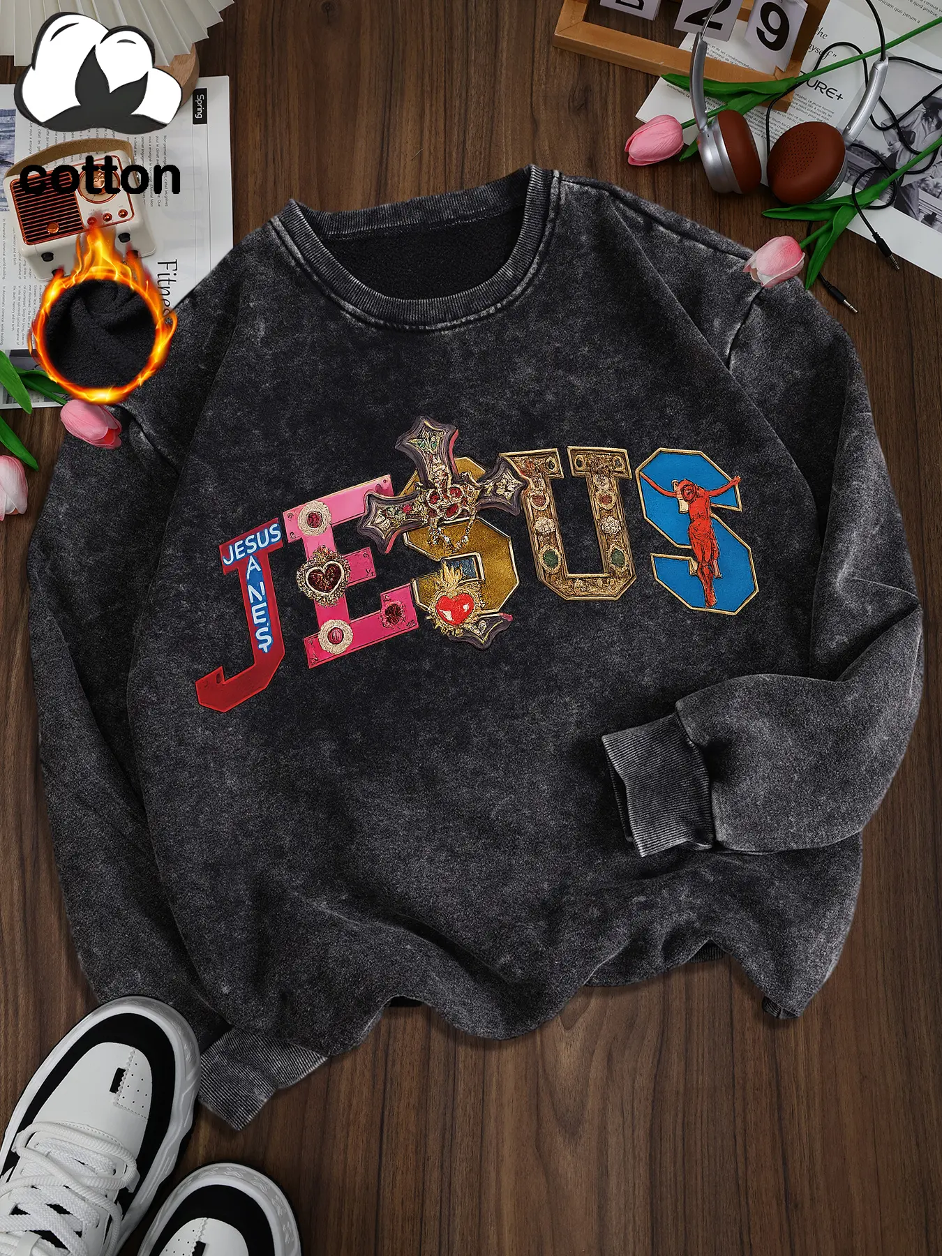 【Unique Print】: Features a distinctive 'JESUS' letter pattern, making it stand out among typical hoodies.