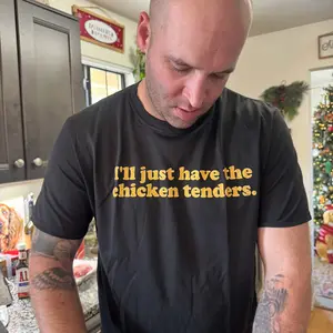 Bought for my brother who loves chicken tenders. The shirt was great.good quality