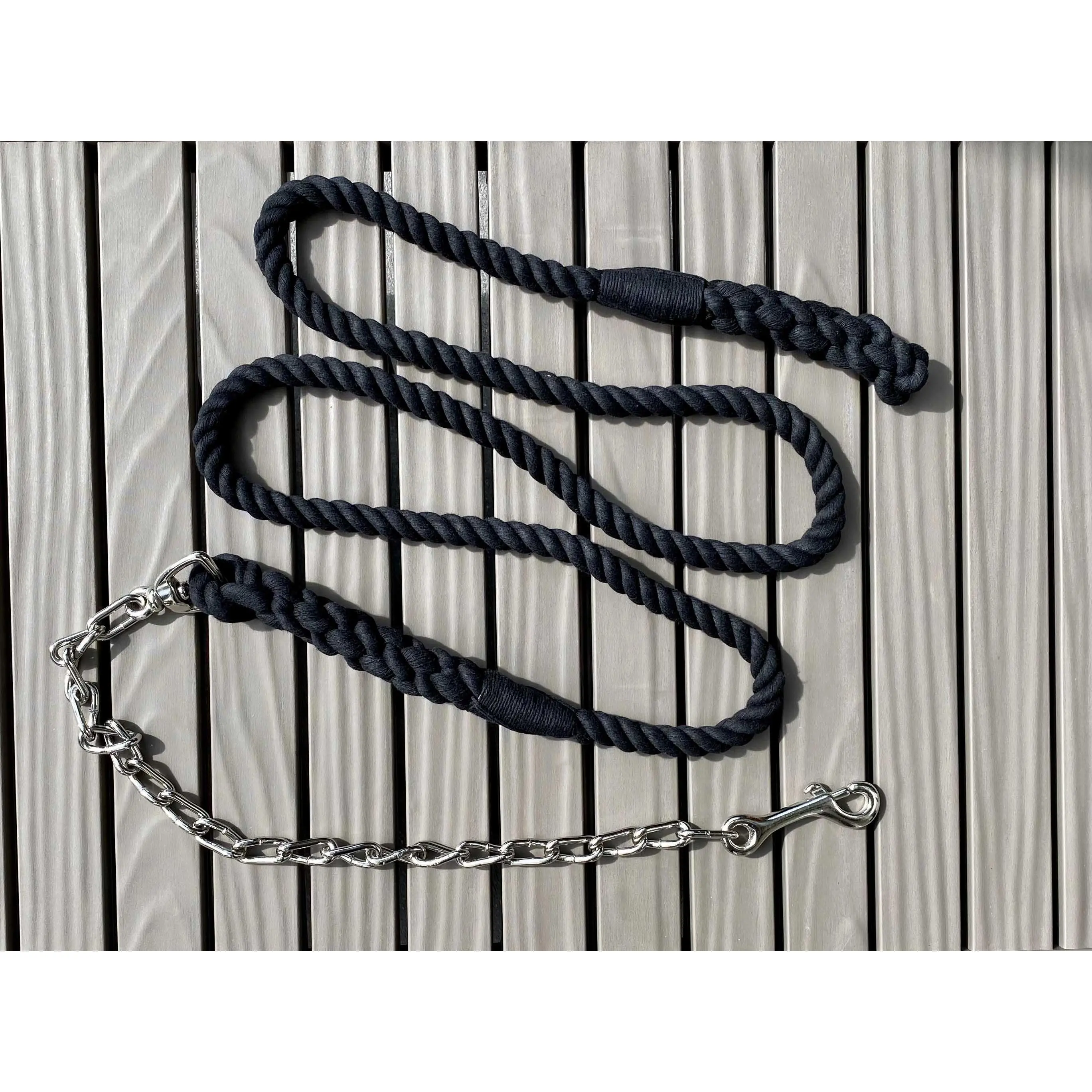 Our Ravenox Twisted Cotton Horse Leads are the epitome of comfort, style, and durability. Made with our #1 best-selling twisted cotton rope, this lead is hand-assembled to ensure quality and beauty. It is the ideal choice for leading and training your horse or pony. These horse leads measures 10 FT in total length. 8 FT of premium twisted cotton rope with a 2 Foot nickel-plated chain and bolt snap. Choose between 5/8-inch diameter or 1-inch diameter cotton ropes.