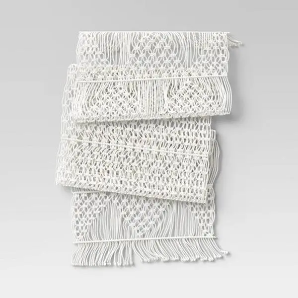 The Cotton Macrame Runner from Opalhouse makes a beautiful foundation for your table decor. In pristine white, this rectangular table runner is detailed with macrame and long fringe on each end to add a touch of boho charm to your dining area. Made from 100% cotton for softness and durability, this white table runner is great to be the centerpiece for both entertaining and family dinners. Simply spread it lengthwise centered across the table, and align your decorative pieces and serving dishes for a quick and easy functional update.