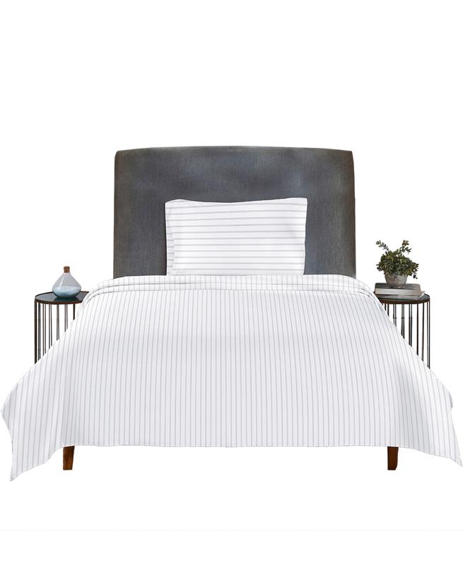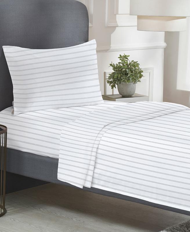 ·3-piece Classic Stripe Twin XL super soft sheet set, 100% Cotton includes 1 top sheet (66" W x 100" L), 1 fitted sheet (39" W x 80" L + 12" Deep Pocket) and 2 standard pillowcases (21" W x 27" L).