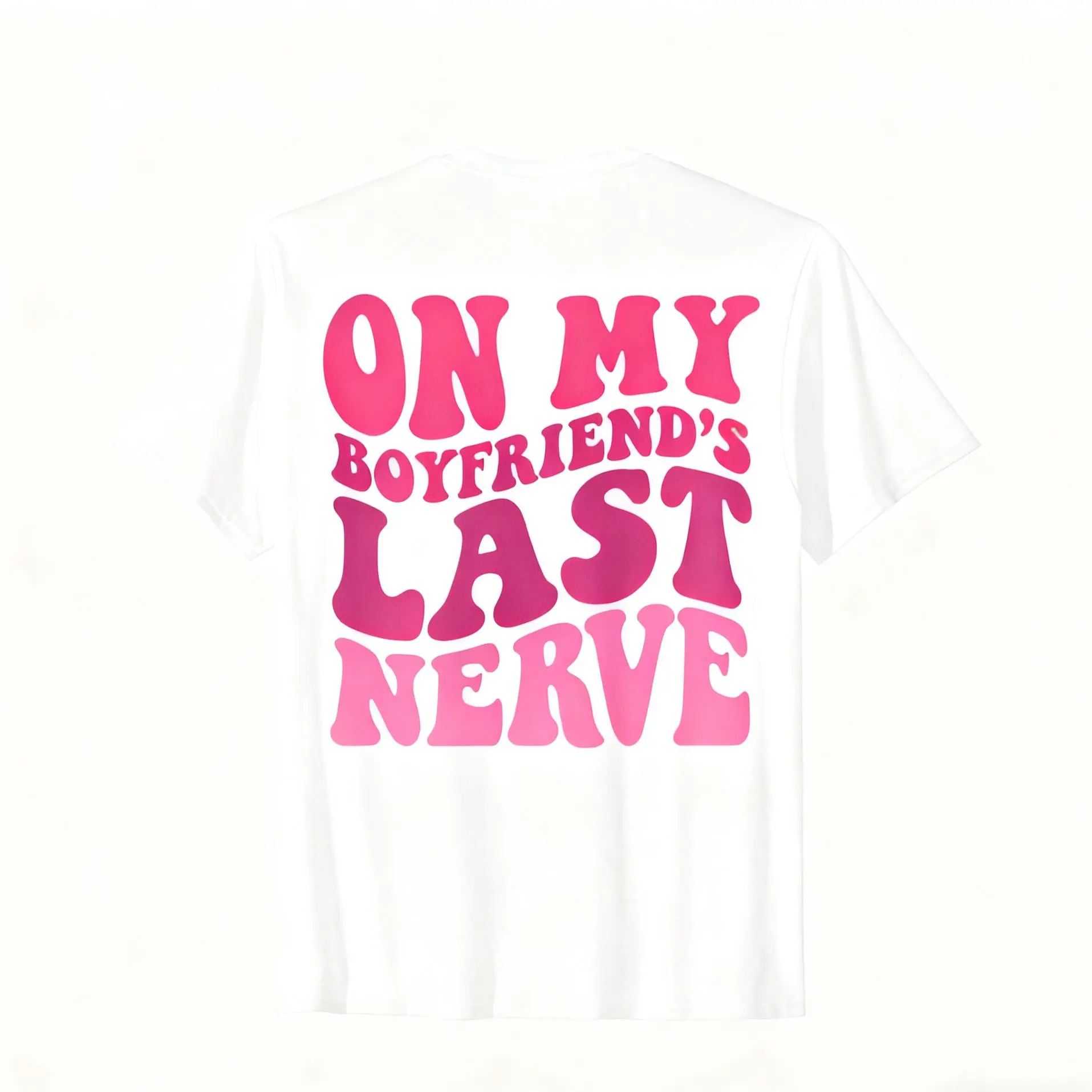 100% Cotton Round Neck Short Sleeve T-shirt with Heat Transfer Printing On My boyfriend'S Last Nerve T-Shirt Halloween Thanksgiving Christmas Gift for Men Women Family Friends Perfect Gift For Couples y2k outfits double print Vintage Metalcore Graphic