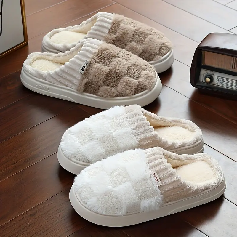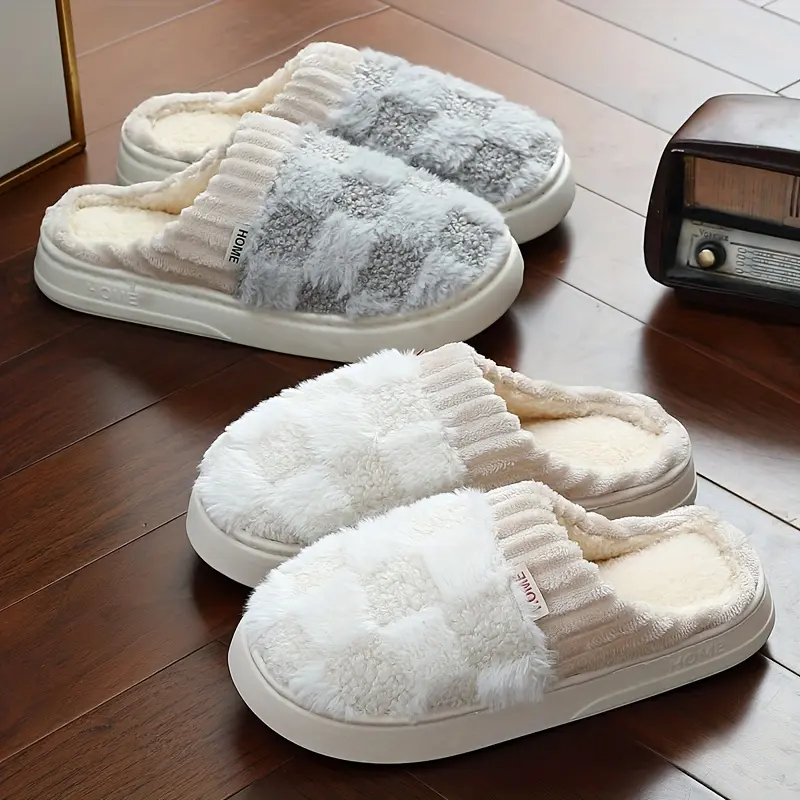 Very comfortable very soft I love the checker print. These are slippers that I wear indoors definitely will order more for the holidays.