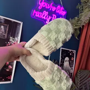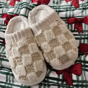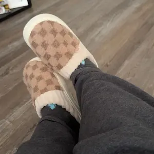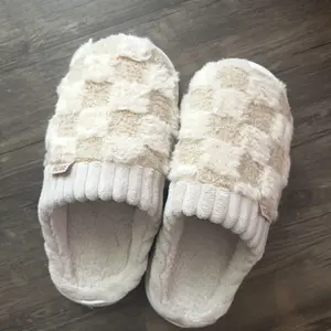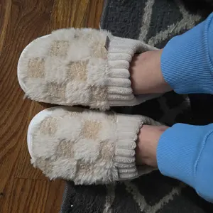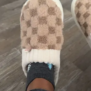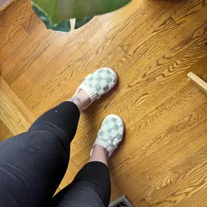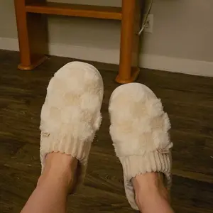These slippers are SO cozy! Super soft, fluffy, and feel like walking on clouds ☁️. The checkered design is cute + neutral, and they’re easy to slip on. Perfect for lounging or running around the house—my new go-to house shoes! I would recommend sizing up if you like more room in your slippers!