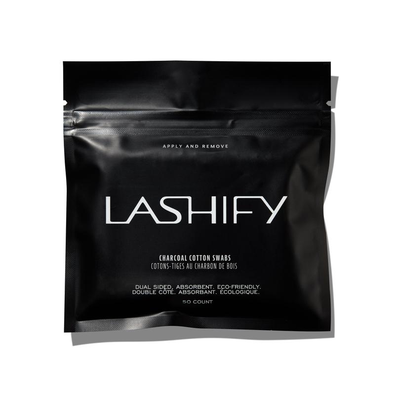 A 50 count pack of dual sided, charcoal-infused cotton swabs for cleaning up any messes and making lash removal effortless. Highly absorbent fibers are soft on the skin and pair perfectly with Release, Melt-Away, and Pre-Cleanse. Avoids traditional white fiber fall out.