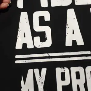 I'm so disappointed, this was to be a birthday gift. The wording/decal is separated in many spots on the shirt, one example is in the photo next to my finger. Also the M in MY is half missing. As soon as this shirt is washed once most of the words will be gone. I am left feeling I've been scammed.