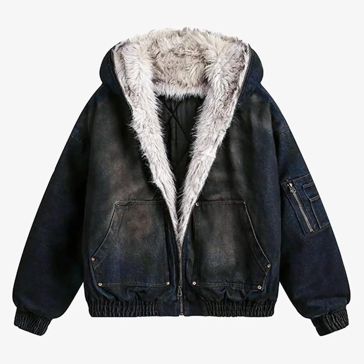 • Detail Features: Front Zipper Closure, Faux Fur Lining Inside, Ribbed Cuffs and Hem, Zippered Arm Pocket