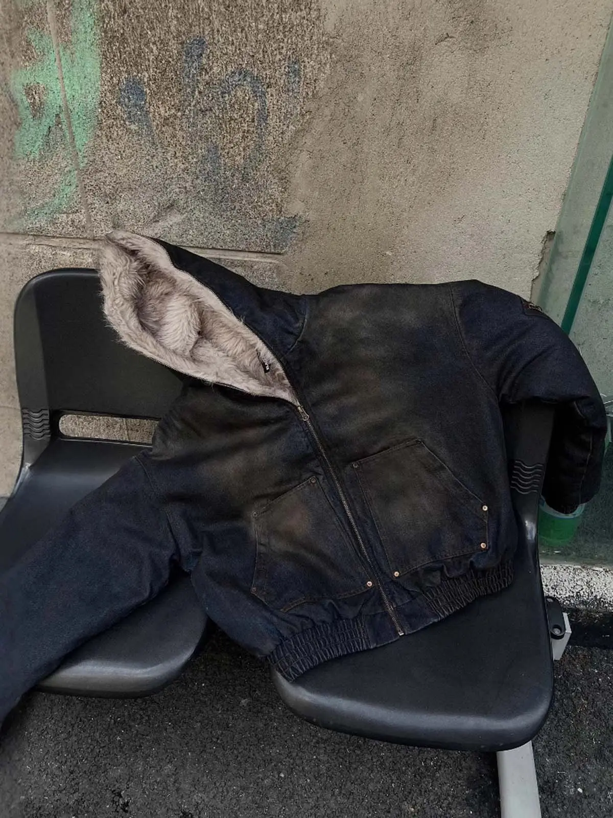 Cotton Washed Fur Hooded Jacket - 2265