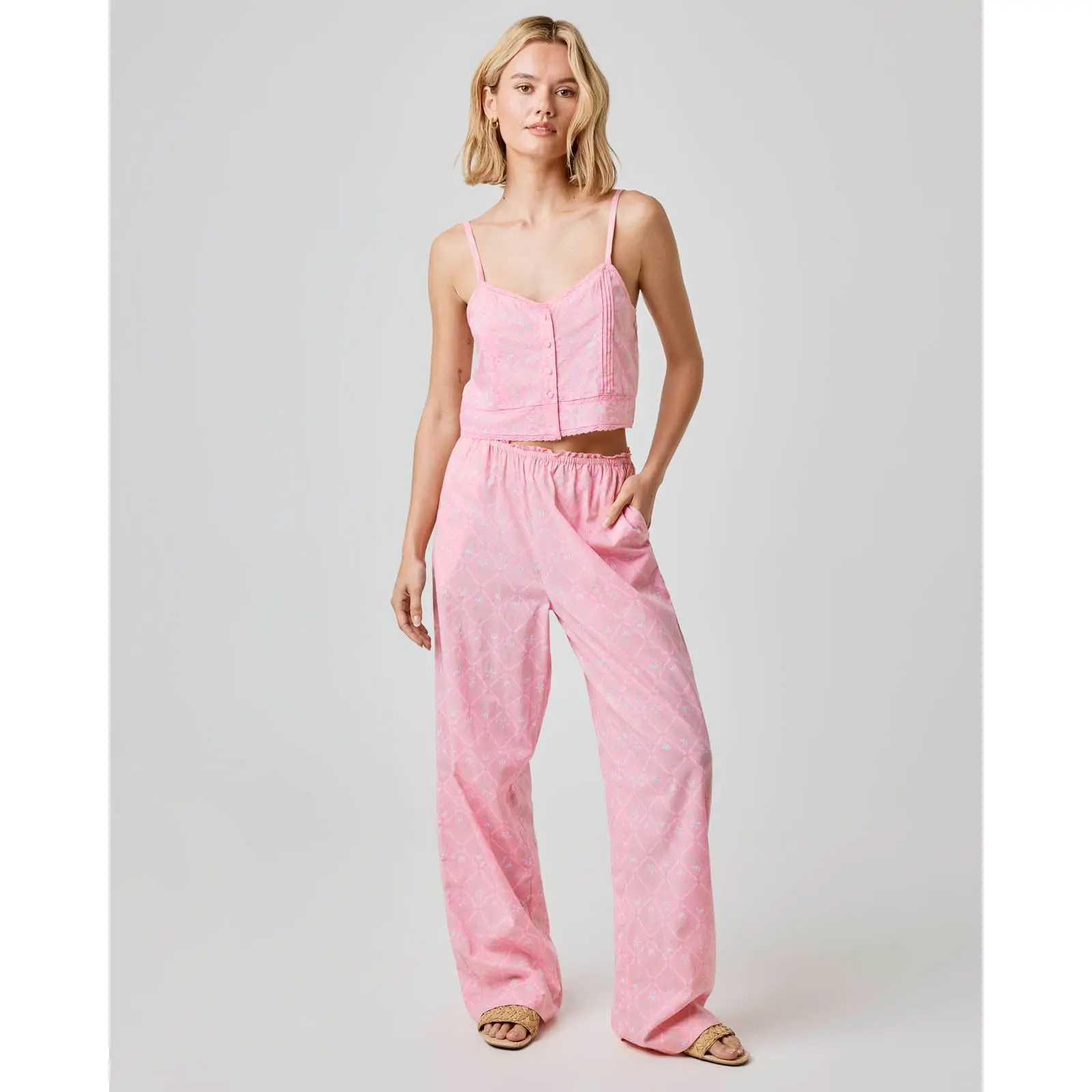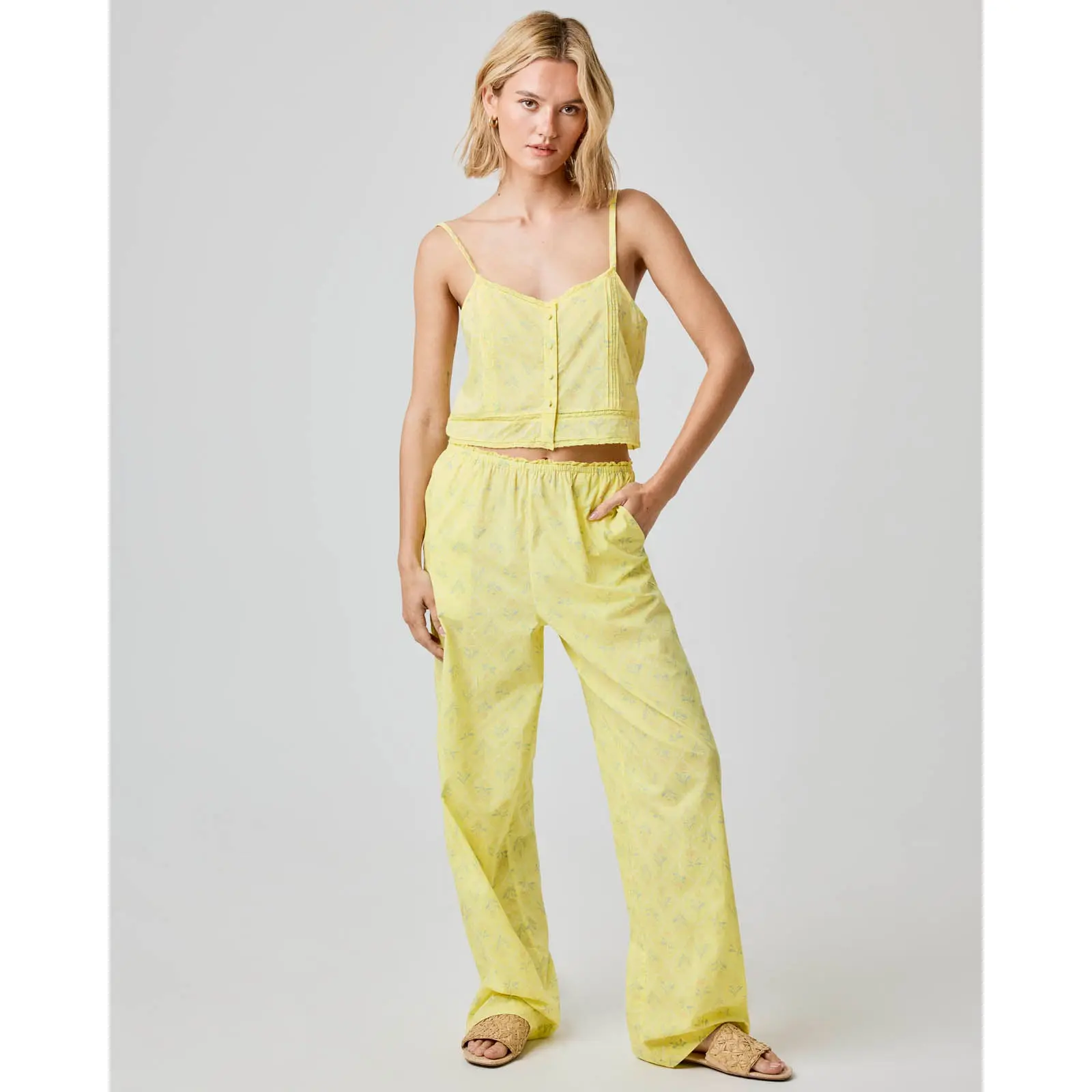 Excellent quality pants and a definite plus being 100% cotton. Perfect for running errands or lounging around the house. My favorite new ‘mom’ pants and look even better with the matching tank! Make me feel more put together even on lazier days, will for sure be buying up the other sets in all the colors! Also great length for taller gals!