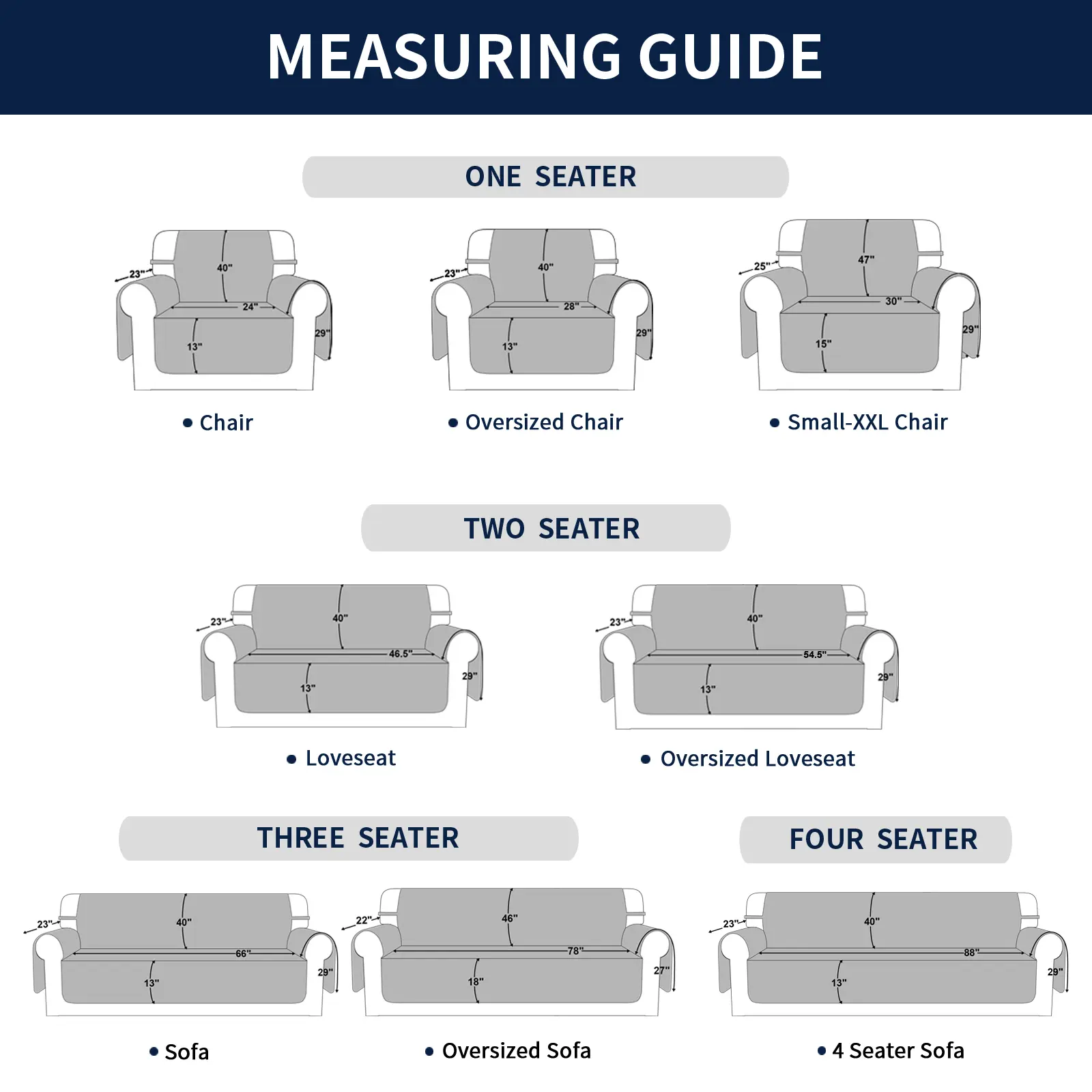 Please Measure your sofa with the Measuring Guide Picture, Select an appropriate size Couch Cover.