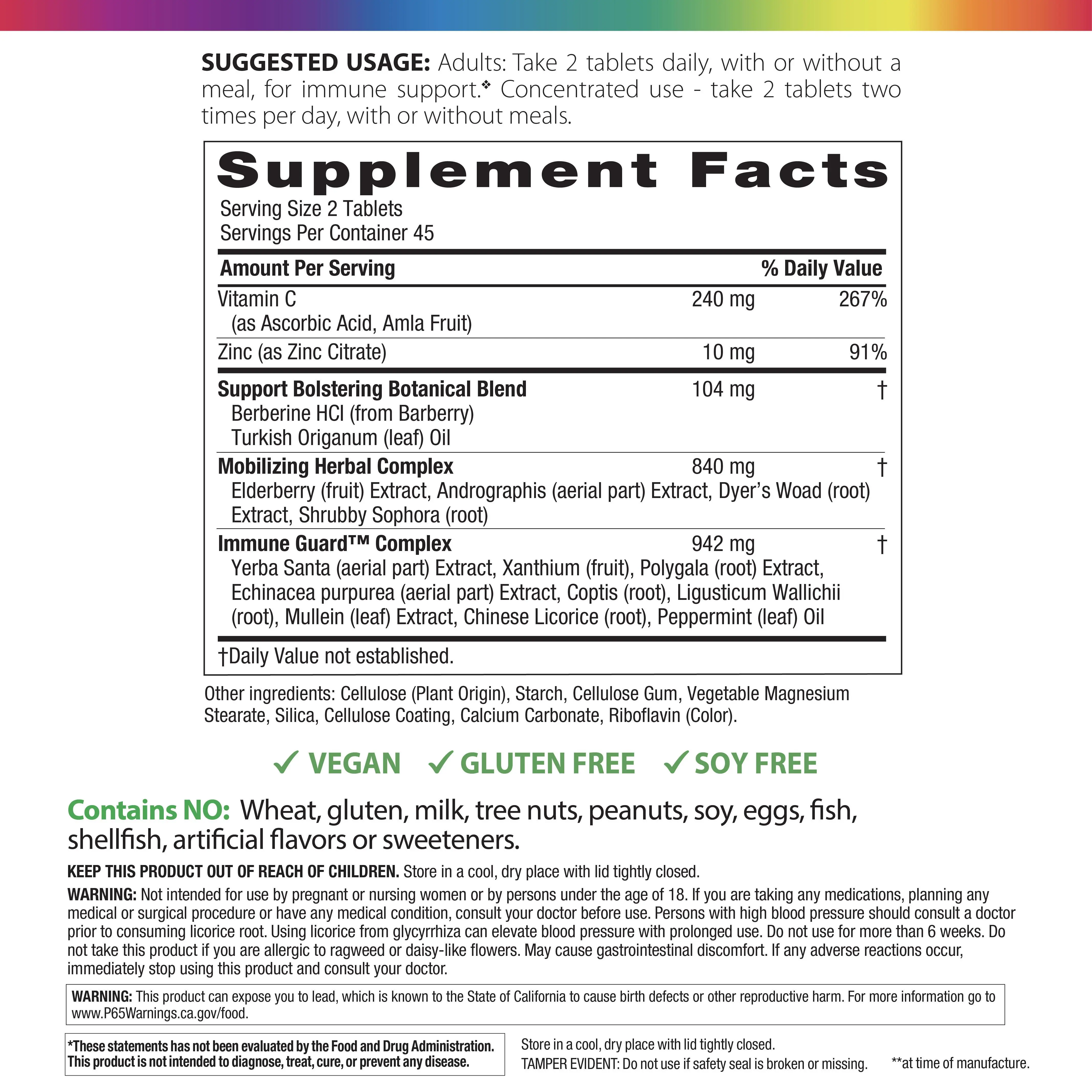 ·3 Targeted Immune Health Herbal Blends Botanical Blend containing Berberine Sulfate & Spanish Origanum Oil Mobilizing Herbal Complex features Andrographis, European Elderberry, Dyer’s Woad, and Shrubby extracts Immune Guard Clear Complex extracts of Yerba Santa, Xanthium, Polygala, Echinacea, Coptis, Horehound, Lingusticum Walllichii, Mullein, and Chinese Licorice, plus Peppermint Oil