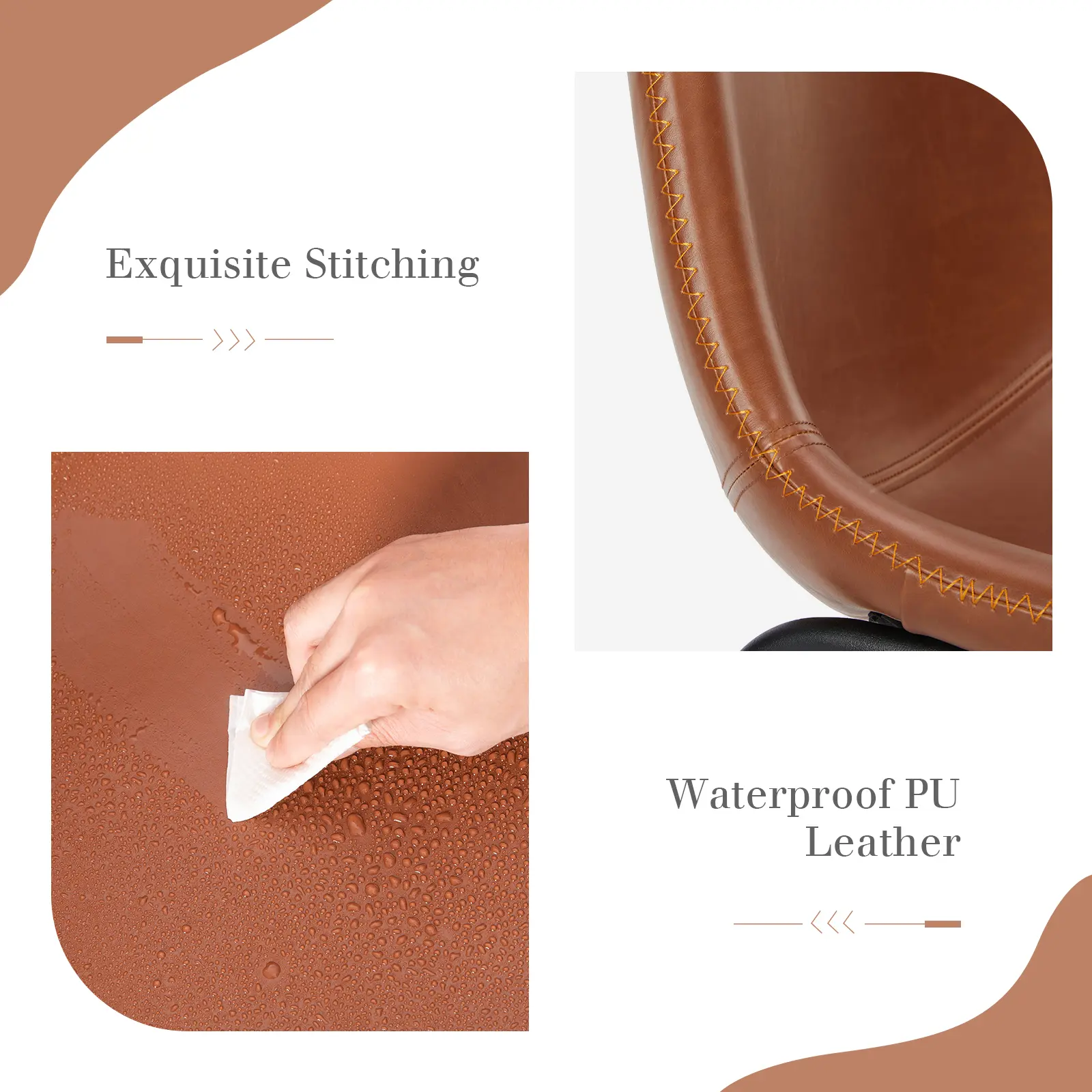 ·【Waterproof Leather】The dining chairs are upholstered in premium crazy-horse faux PU leather in a charming farmhouse and rustic tone. The waterproof leather of these modern counter stools is easy to clean. Just a damp towel wipe will keep these counter stools durable and looking like new again.