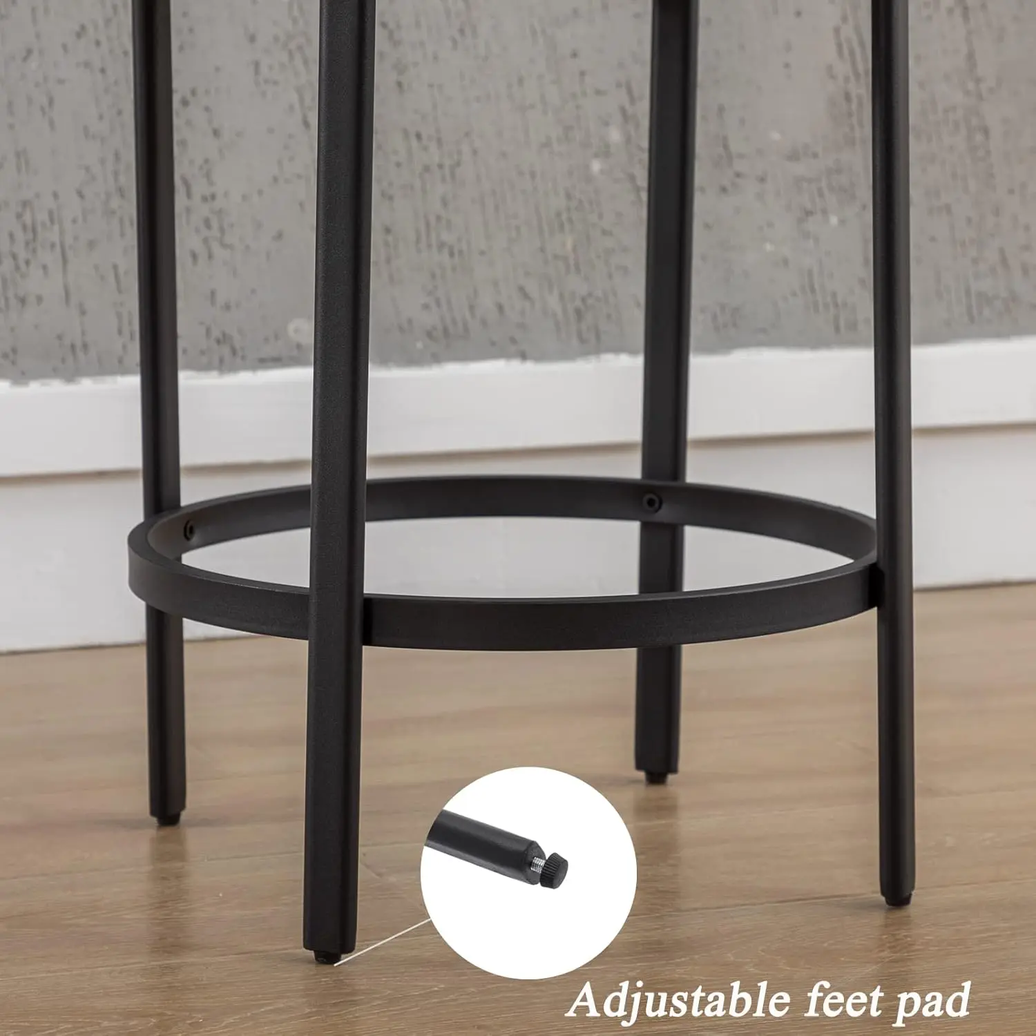 【Durable Frame】Stable black metal legs support the whole kitchen island stools, equipped with circle metal footrest, you can relax your feet when you talking with your friends. And each leg has a foot pad, help you protect your floor or carpet.