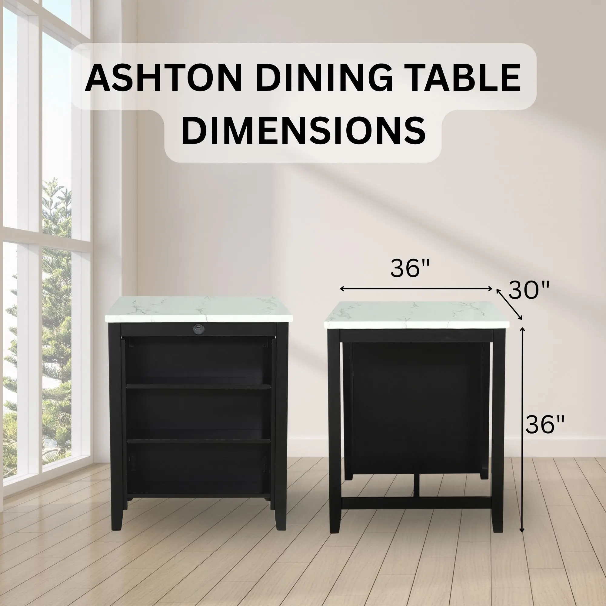 Upgrade your home with the 36"W Ashton Counter-Height Dining Set, a sophisticated and functional counter-height dining set designed for modern living.