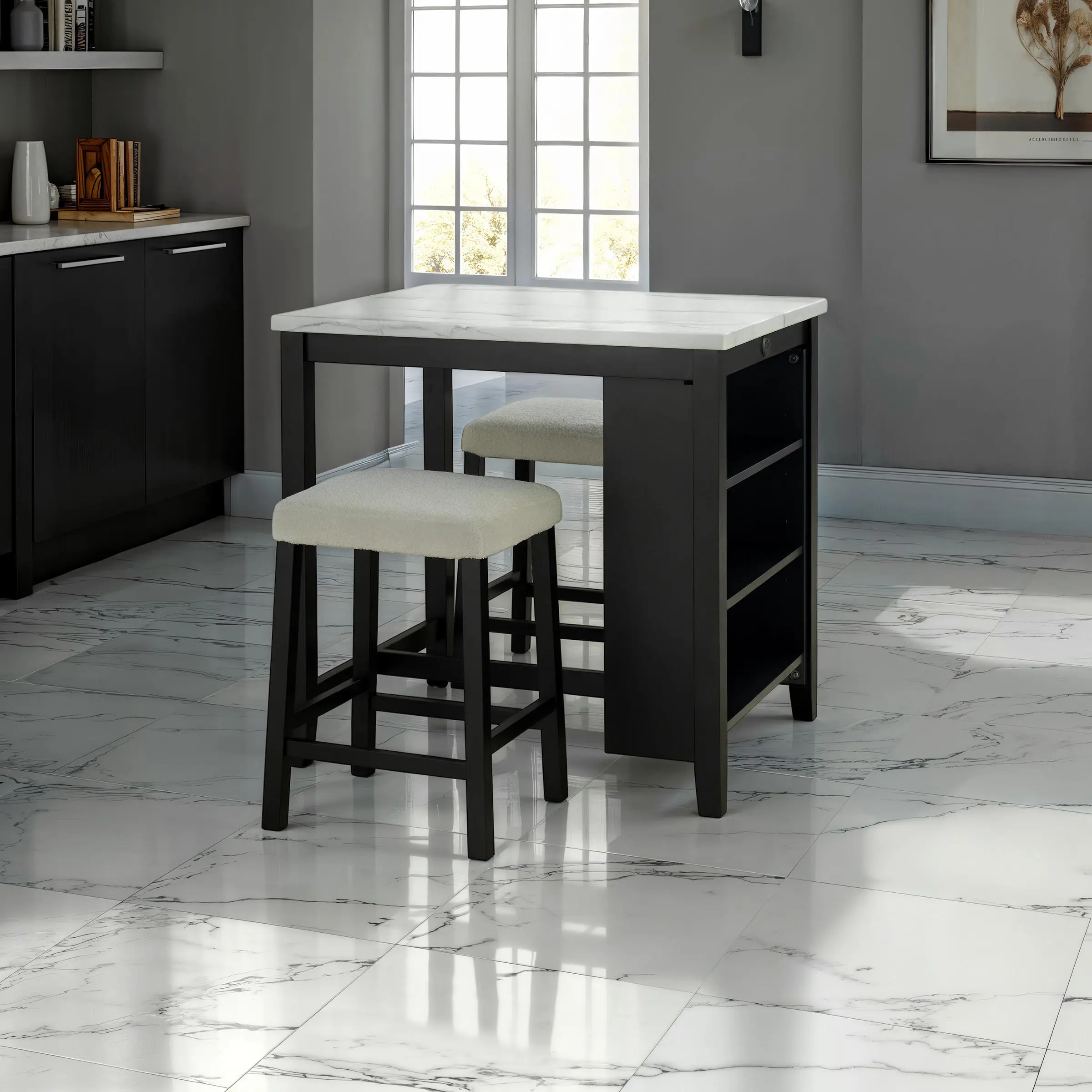 ·Faux Marble Top: Sleek, high-gloss surface for a stylish touch