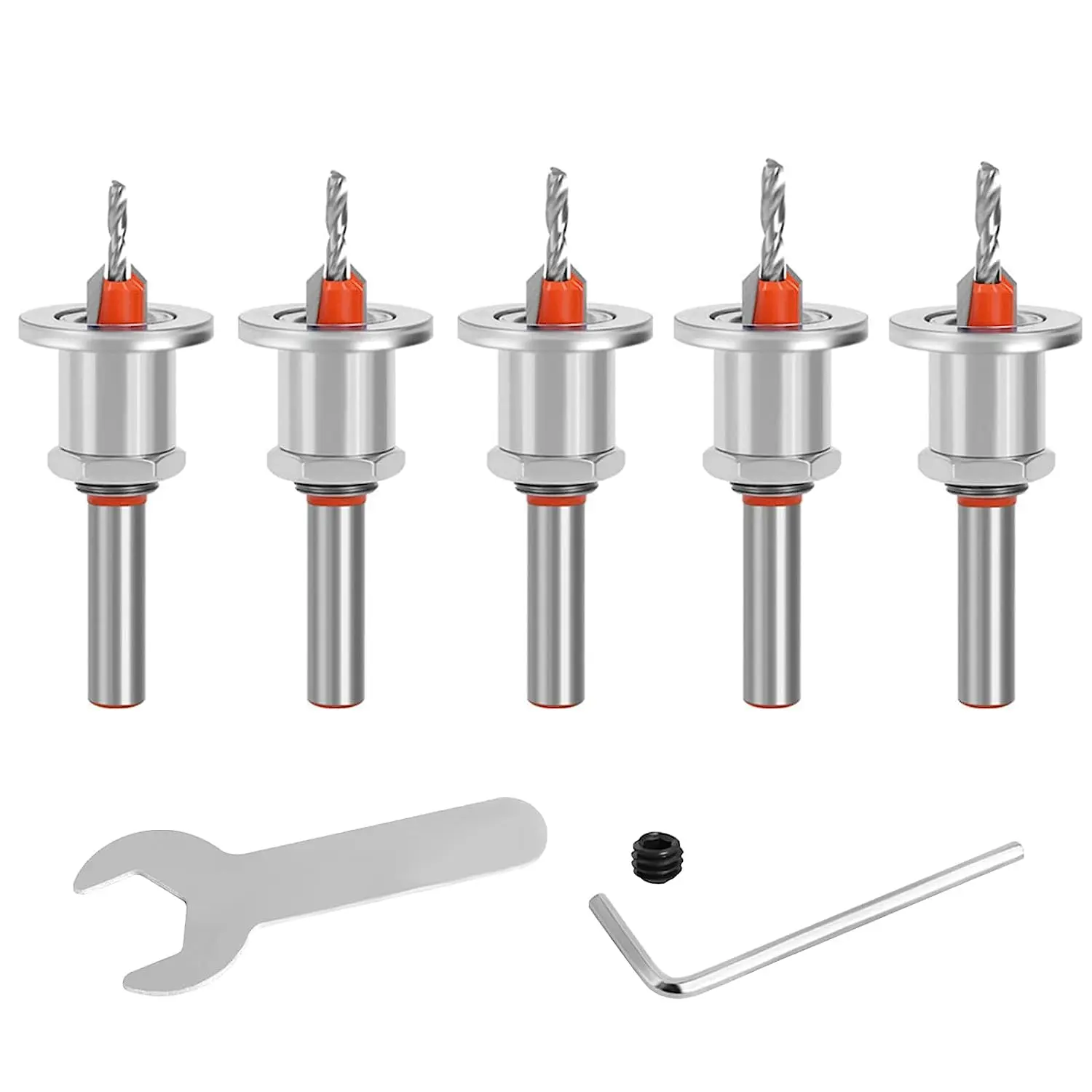 ·Specifications. Woodworking countersink drill bit set for wood screws without changing bits. Drilling length can be adjusted for various length screws simply by loosening and tightening the setscrew.