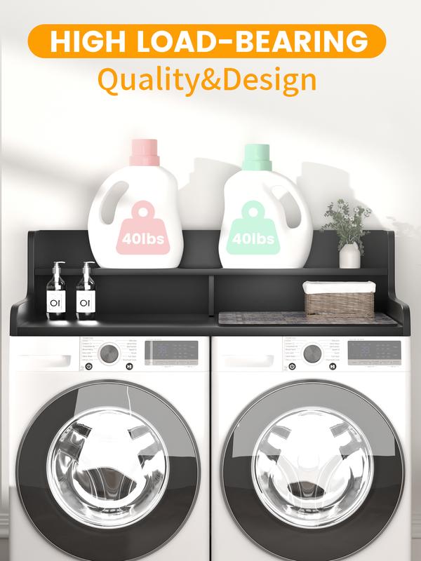 This 27.55"x54" Washer & Dryer Countertop features a 2-Tier Storage Rack & Cover. It's a heavy-duty laundry organizer, designed for space-saving efficiency. The countertop is compatible with front-load washers & dryers, offering a functional organizer for your laundry room. Available in Black/Brown/Natural, it enhances your laundry area's functionality.