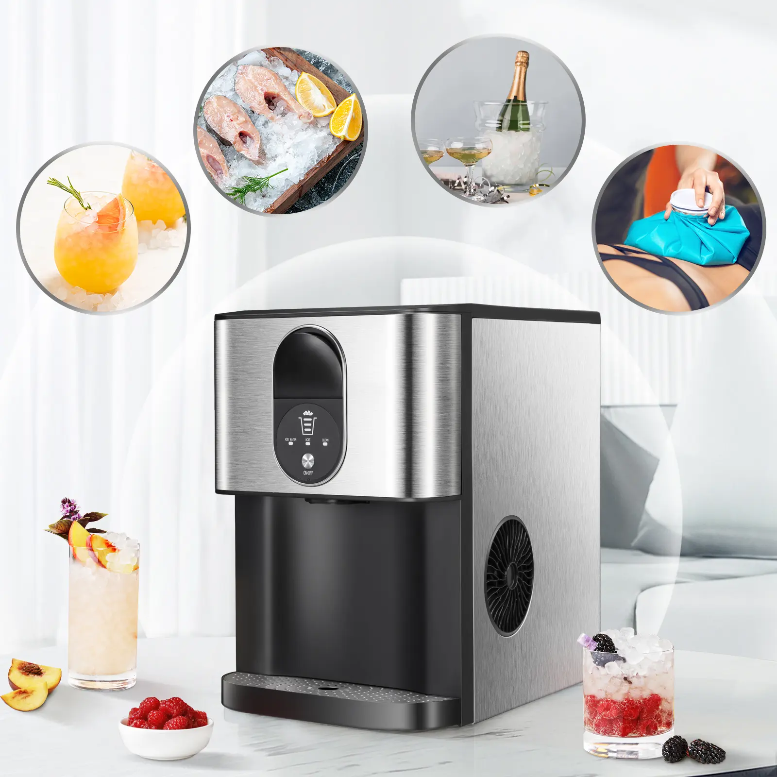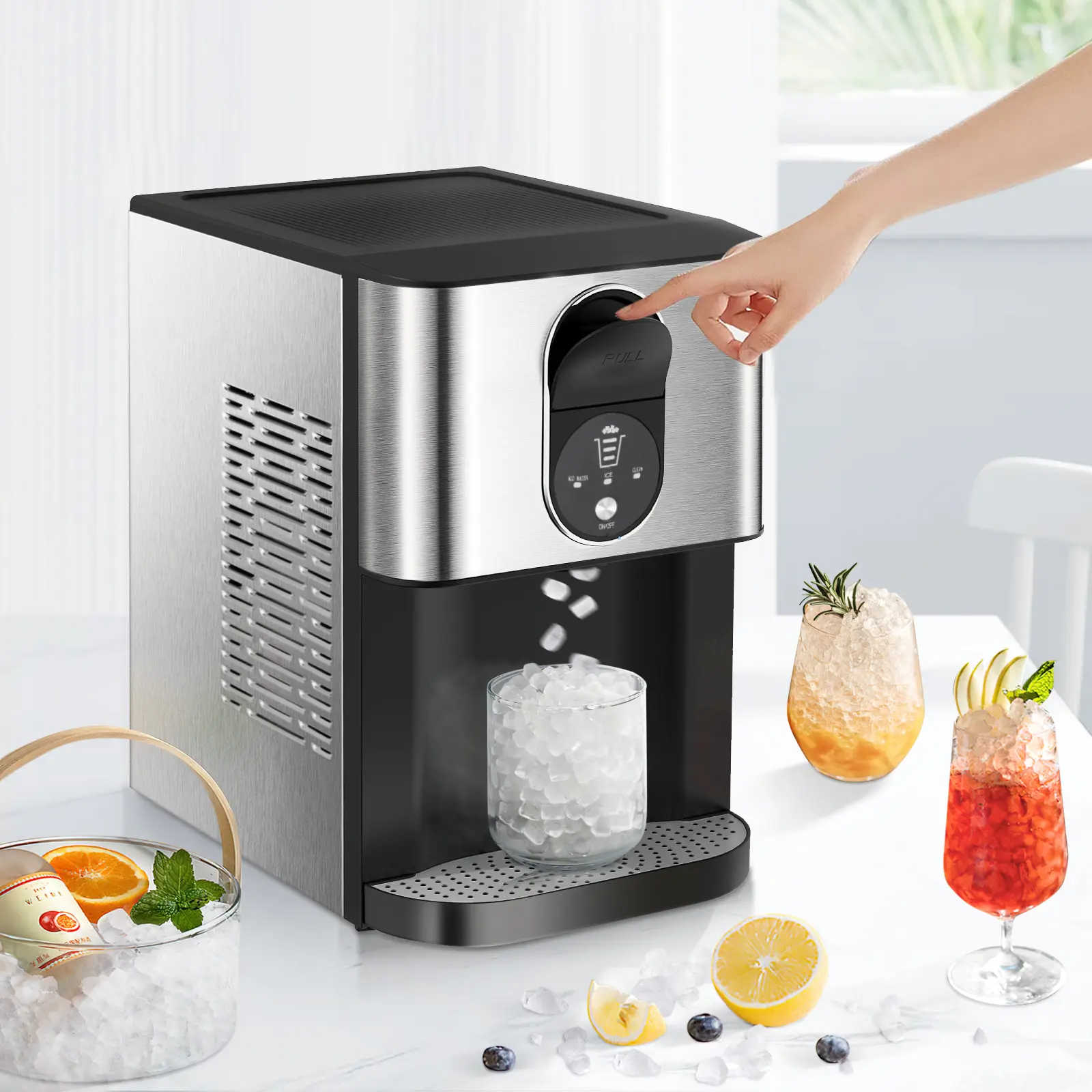 ·Chewable nugget ice: Chewing-block ice is made from crushed ice cut with blades, as opposed to traditional hard block ice which are chewable, brittle, ready fast and retains its flavor. The optimal melting speed preserves the original flavor of whisky and cold drinks.
