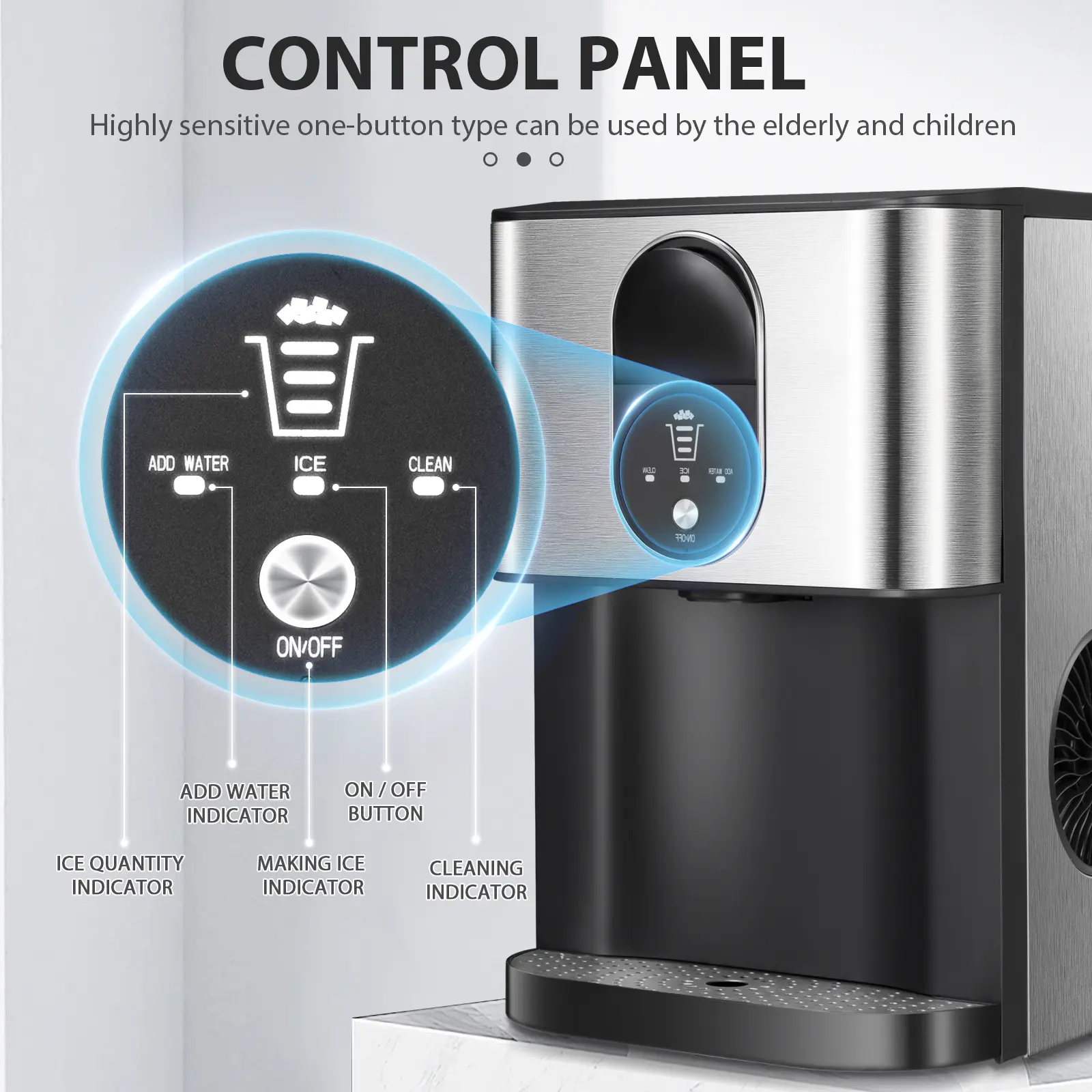 ·QUIET AND USER FRIENDLY: It makes ice with low noise. Only need to press one button, helps you to quickly understand how to use it. After ice making finished, you can easily pull the wrench to let the ice out to your cup. When the water is insufficient, the indicator light will turn on.