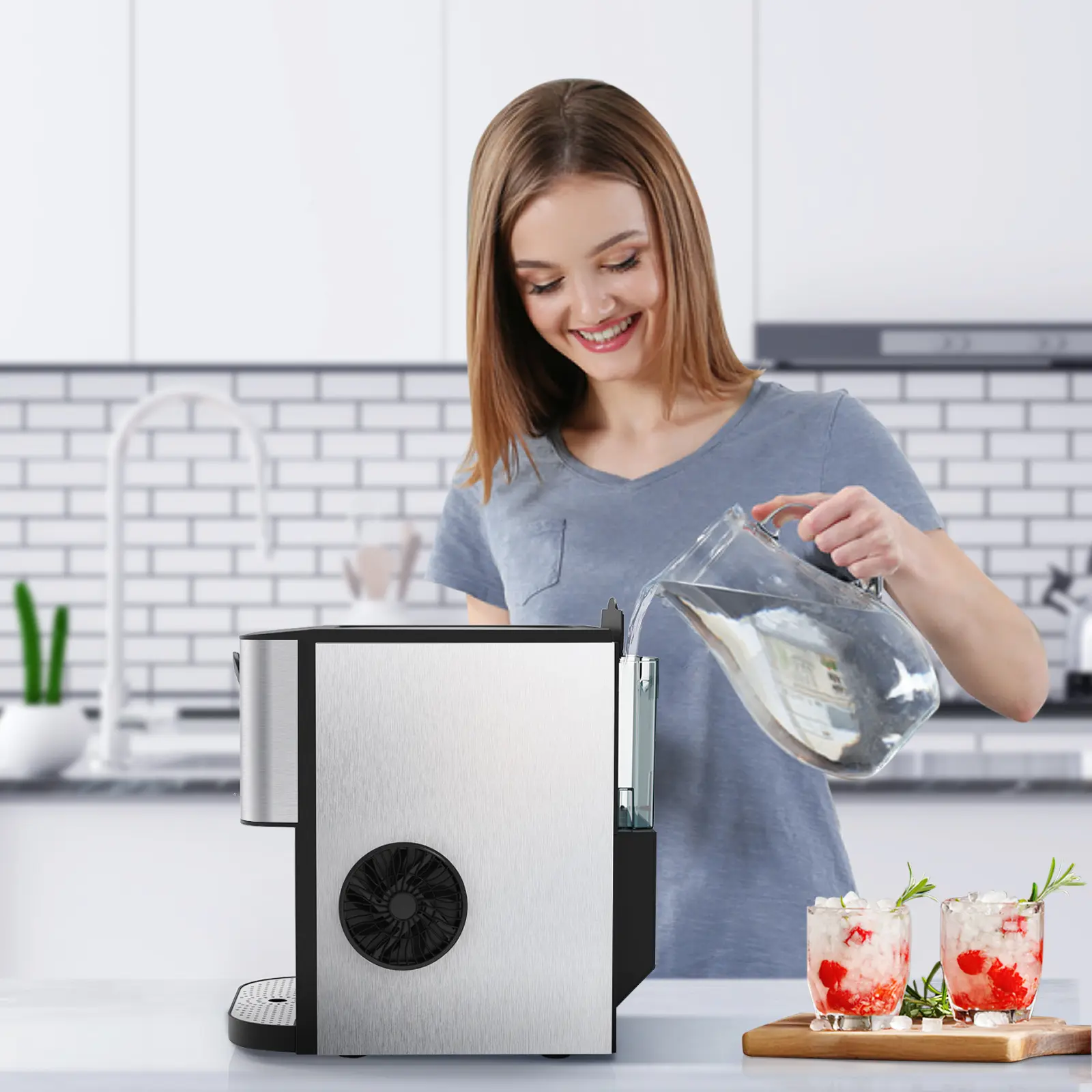 ·FAST ICE MAKING:Fill 2.4L of water into the water tank, maximum ice capacity can reach 44lbs in 24 hours. It won't make you feel anxious because of waiting, let you and your family have ice cubes all day long.