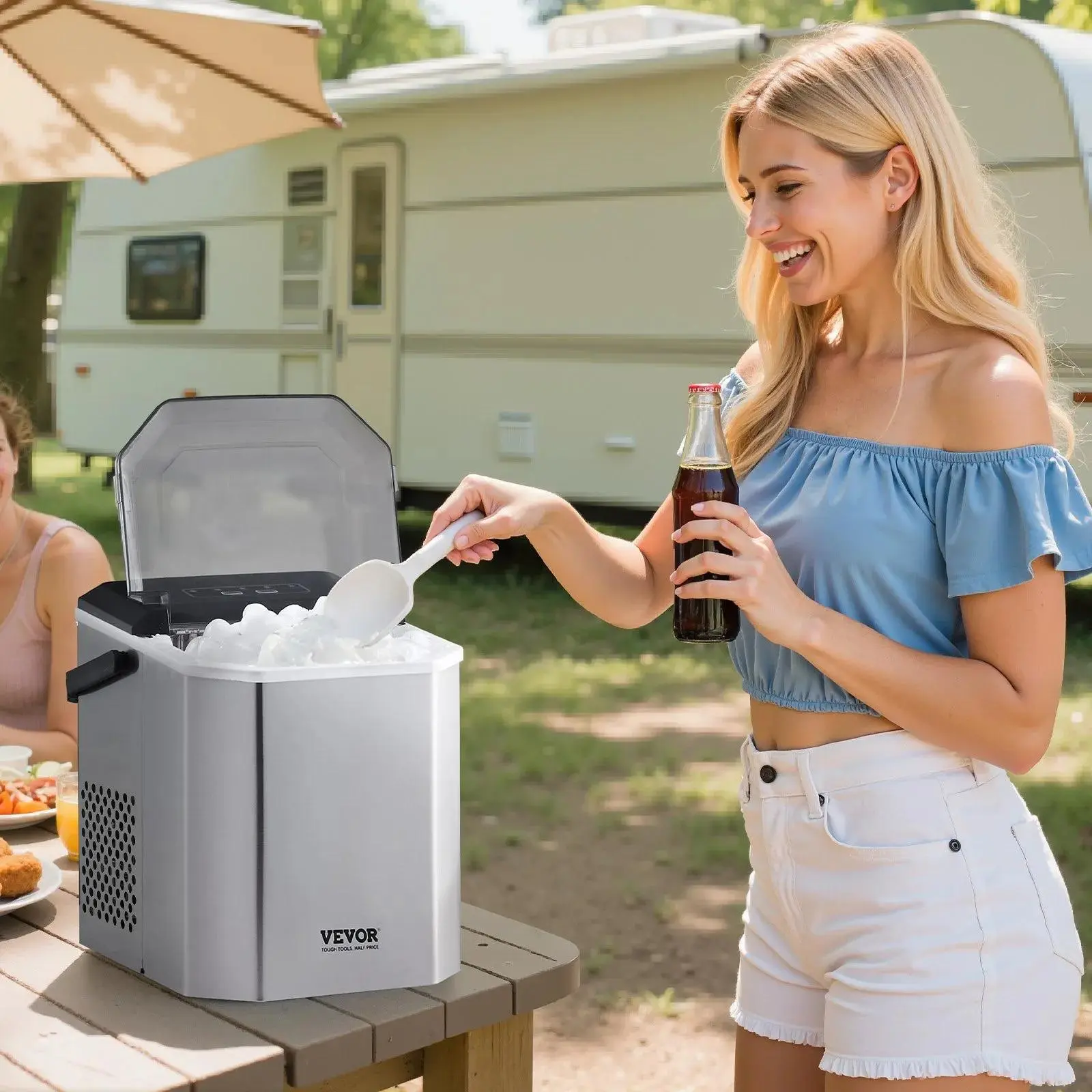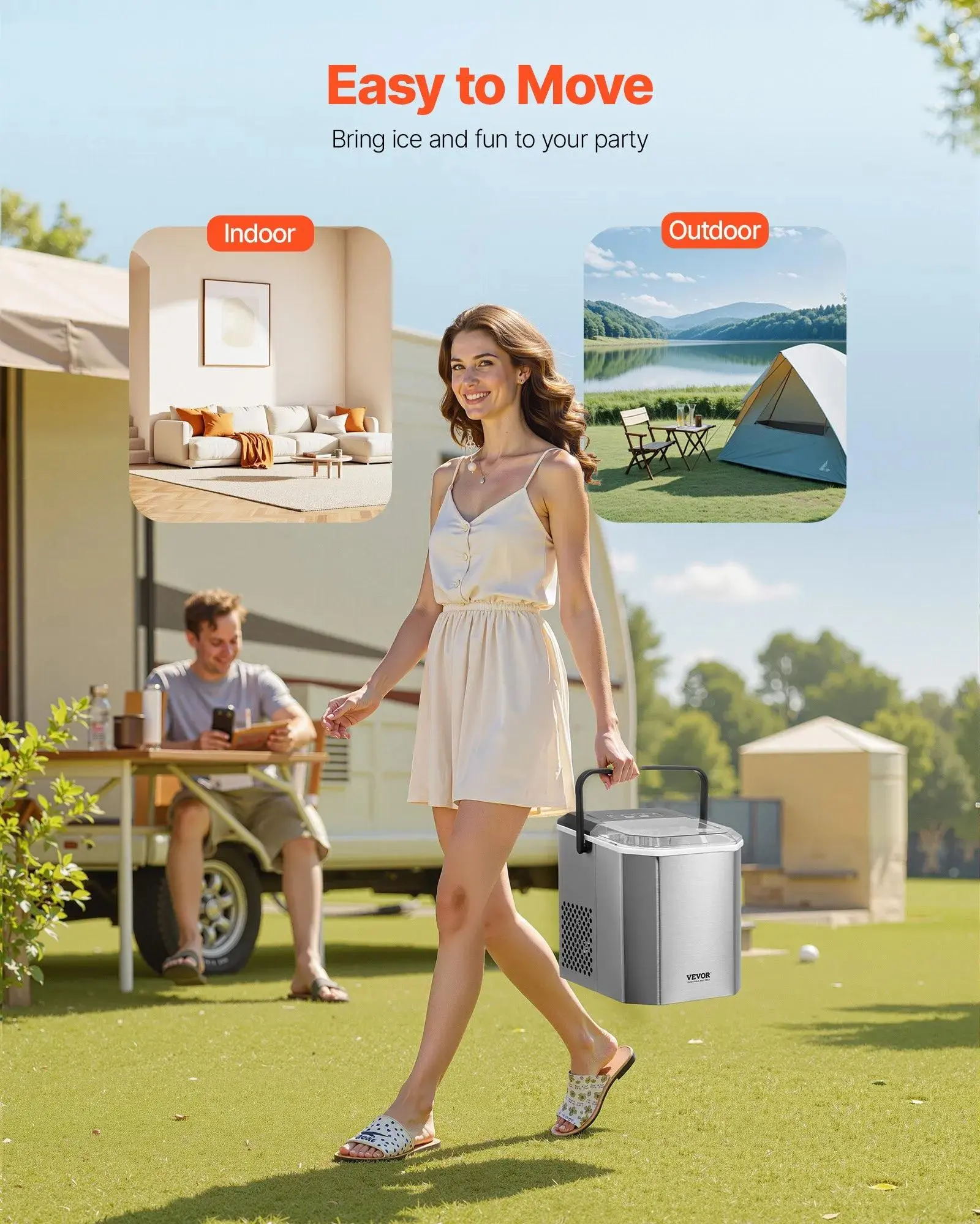 The portable ice maker features a stainless steel body, ensuring durability and easy cleaning. The transparent lid allows you to monitor the ice-making process anytime. It's long-lasting and convenient to use.