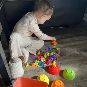 My daughter loved this ! She loves sorting them out and putting each dinosaur in the color they go in and she loves counting them.They remind me of the ones from elementary school they were like this but with bears on them I’m glad I bought this she loves it.If you have a toddler definitely get it