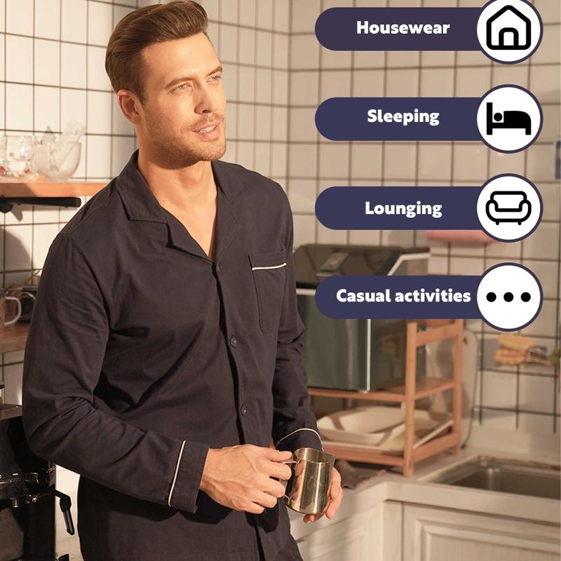 ·WELL-FITTING & ELEGANT DRESSING: DAVID ARCHY pajamas for men features a button-down top, notched collar, top left pocket and contrast piping that perfectly composes an elegant look, allowing every man to display a mature and confident charm when wearing this mens sleepwear.