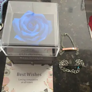 Blue, Rose Gift Bos + Couple Jewelry Set - A