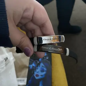 I got these for Christmas for me and my boyfriend and we both wear them all the time! I love how they glow and you can charge them with your phone light but the sunlight works best in my opinion. Great quality they don’t turn your skin green and everything but the rings are adjustable.