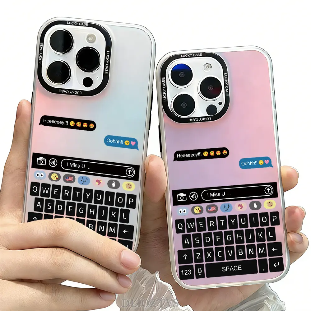 Couple on SMS Interface Pattern Color-Changing Mobile Phone Case for iPhone 17 Pro Max 17Air 16 Plus 15 14 13 12 11 Shockproof Protective Case Color Changes with Angle
