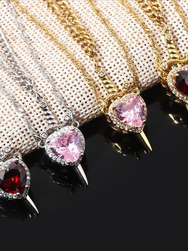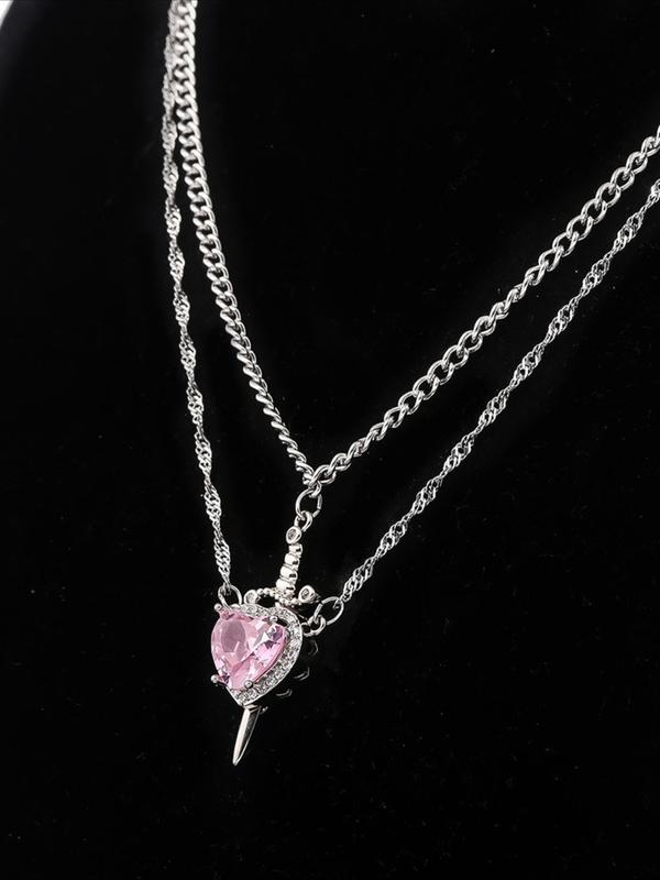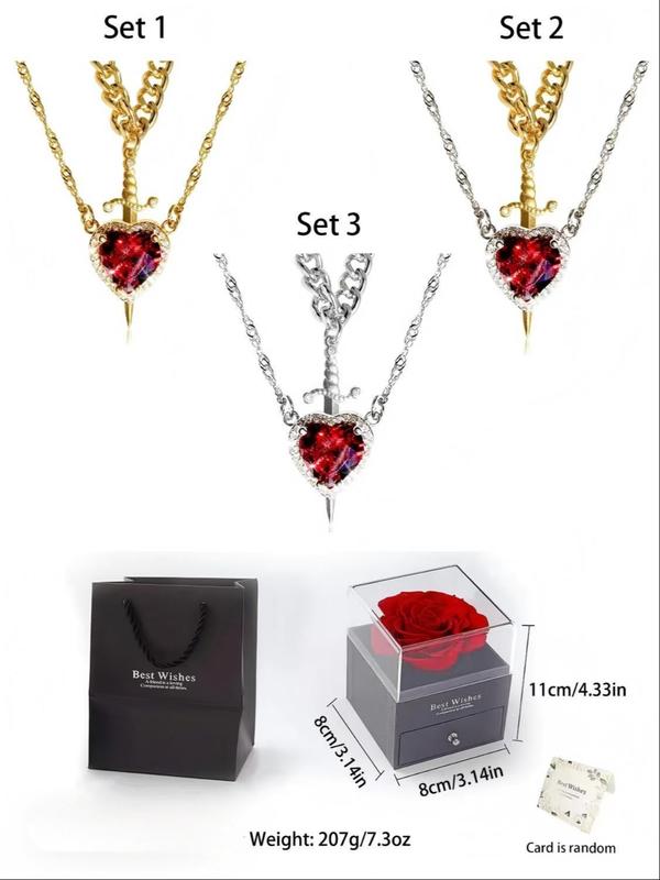 [Couple Pendant Set] 2 Pcs Couple Pendant Necklaces, One Sword-shaped Necklace for Men and Women, One Sword-shaped Pendant with A Heart-shaped Pendant, Perfect Valentine's Day Gift or Everyday Versatile Accessory, Love Heart Necklace